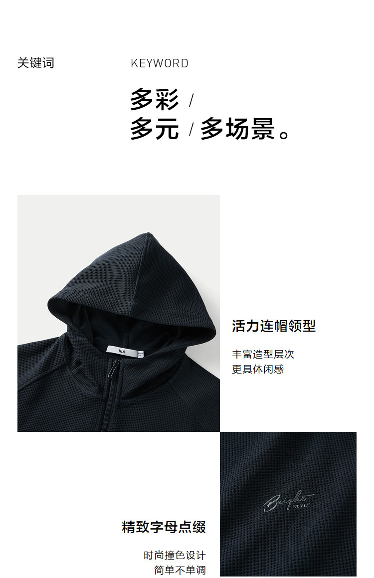 商品名称:【连帽开衫】春秋热销华夫格面料柔软男士卫衣 186824