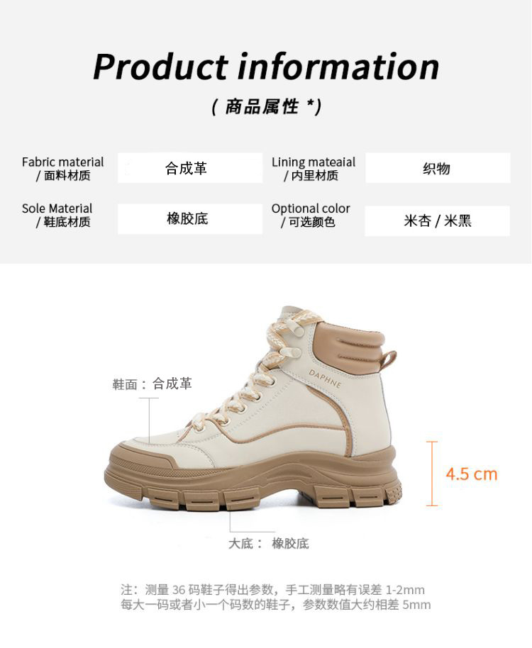 商品名称:【高帮休闲女鞋】秋季厚底鞋潮流复古百搭运动鞋女鞋 435607
