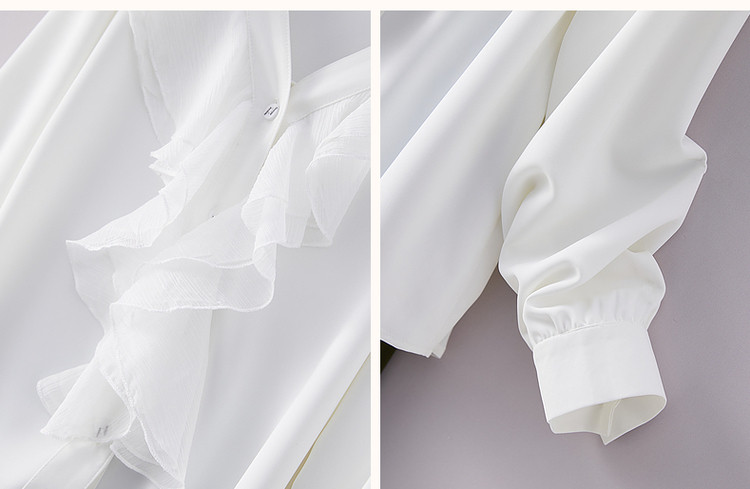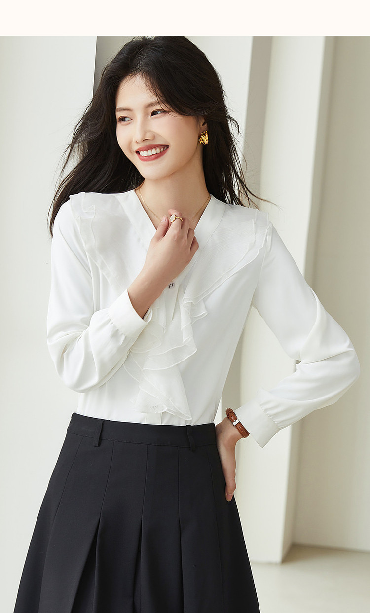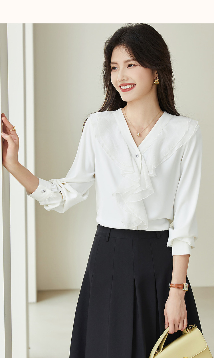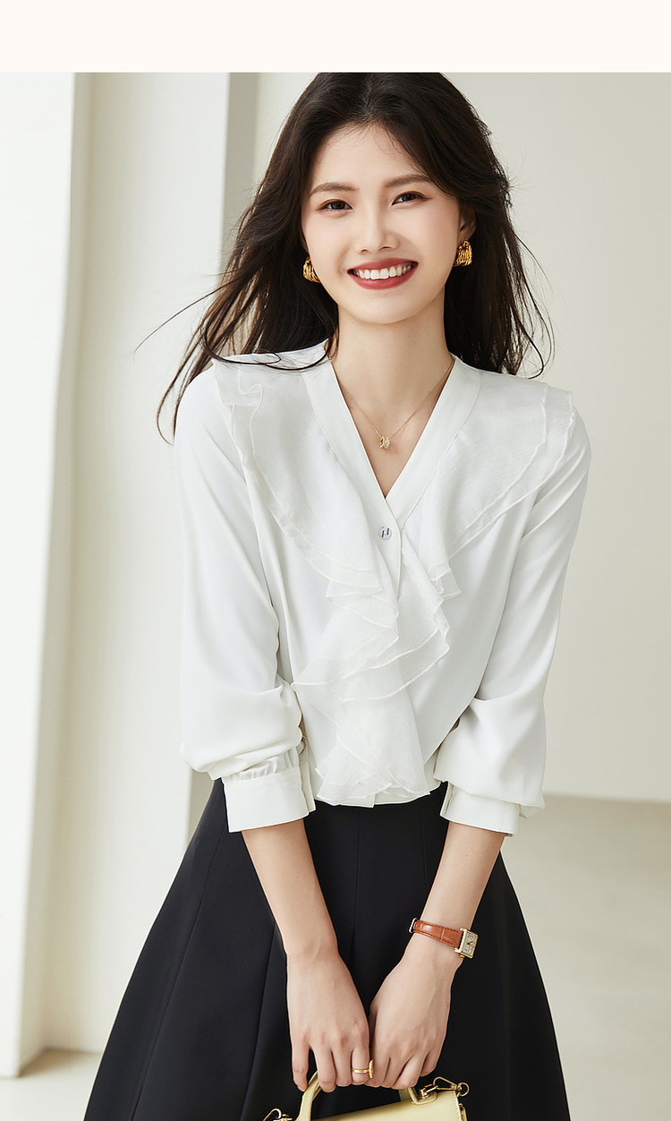 【香榭丽舍系列】秋日法腔V领唯美花边丝滑雪纺衬衣女装上衣 696769