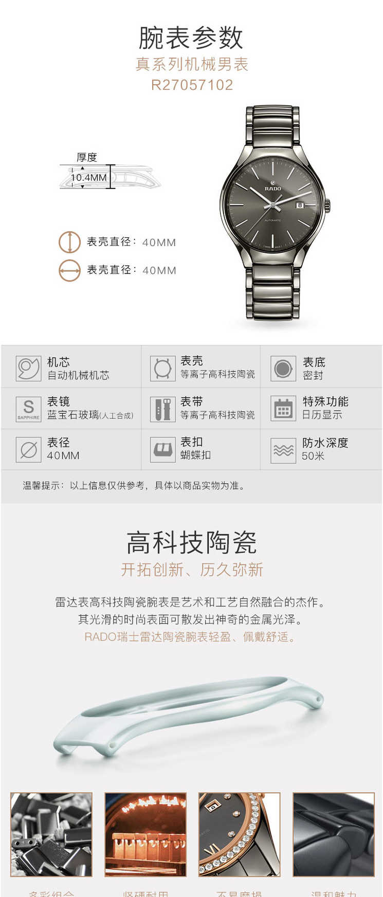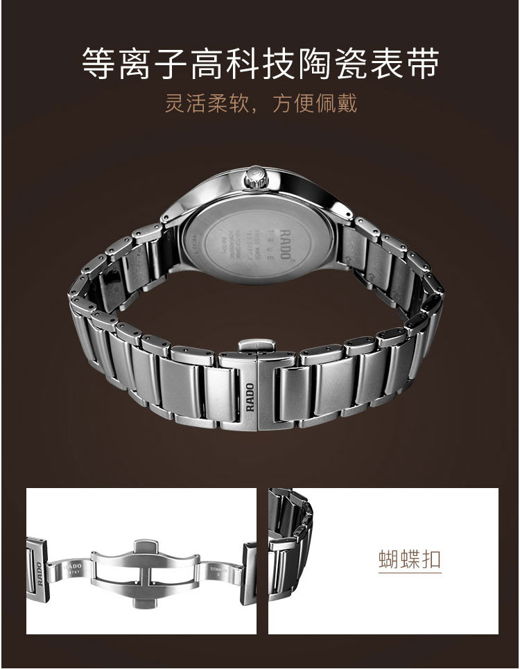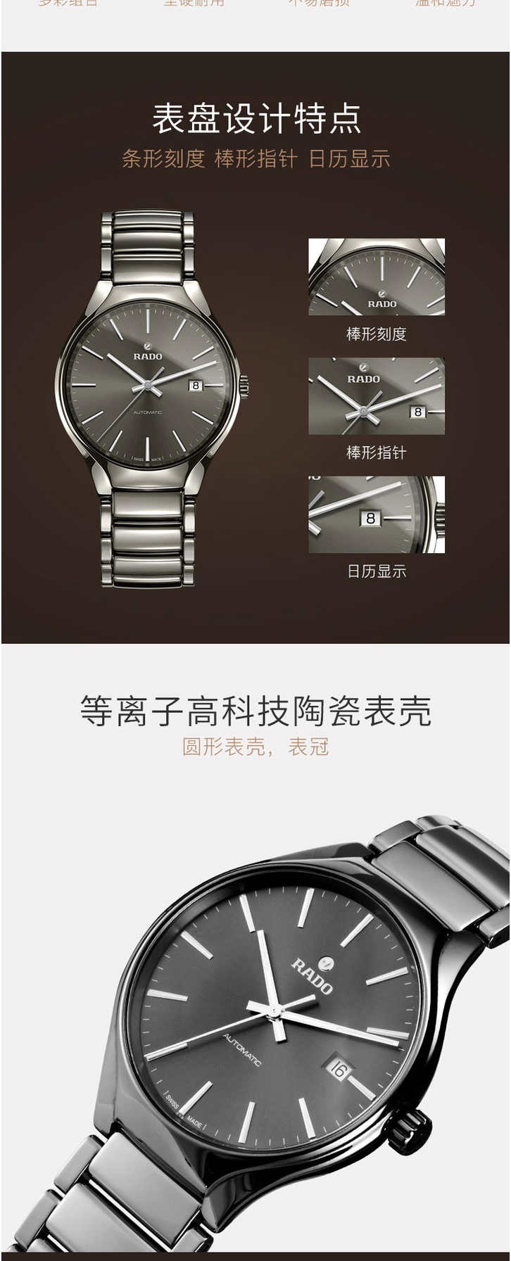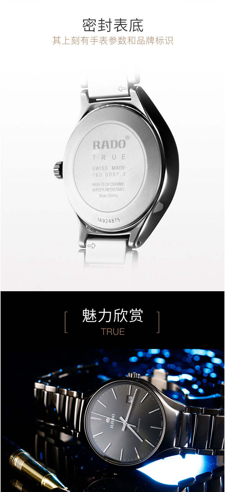 商品名称:雷达RADO 真系列男士等离子高科技陶瓷表带机械手表 R27057102