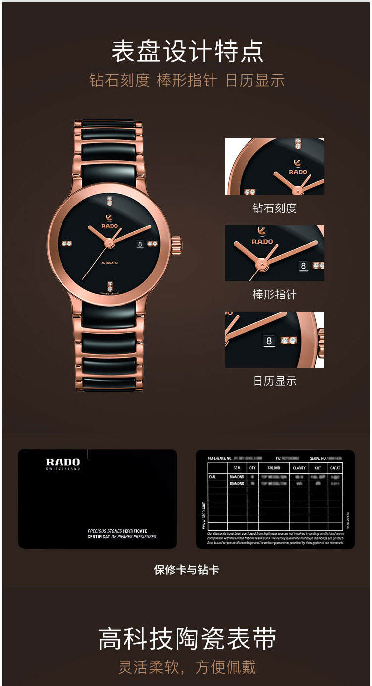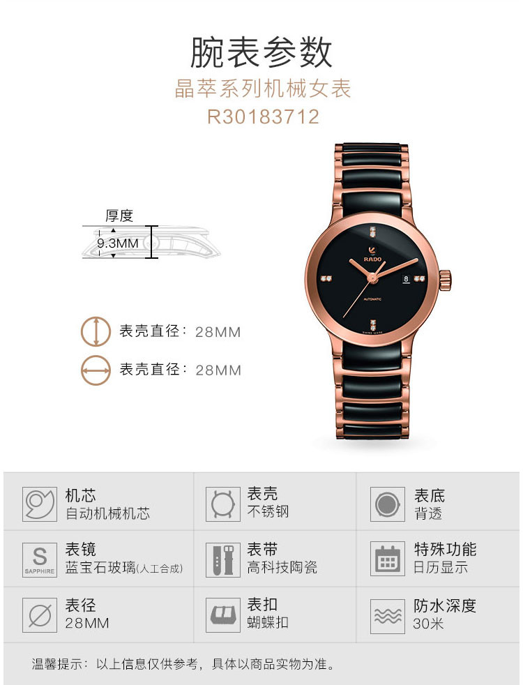 商品名称:RADO雷达 晶萃系列女士陶瓷表带情侣机械钻表 R30183712