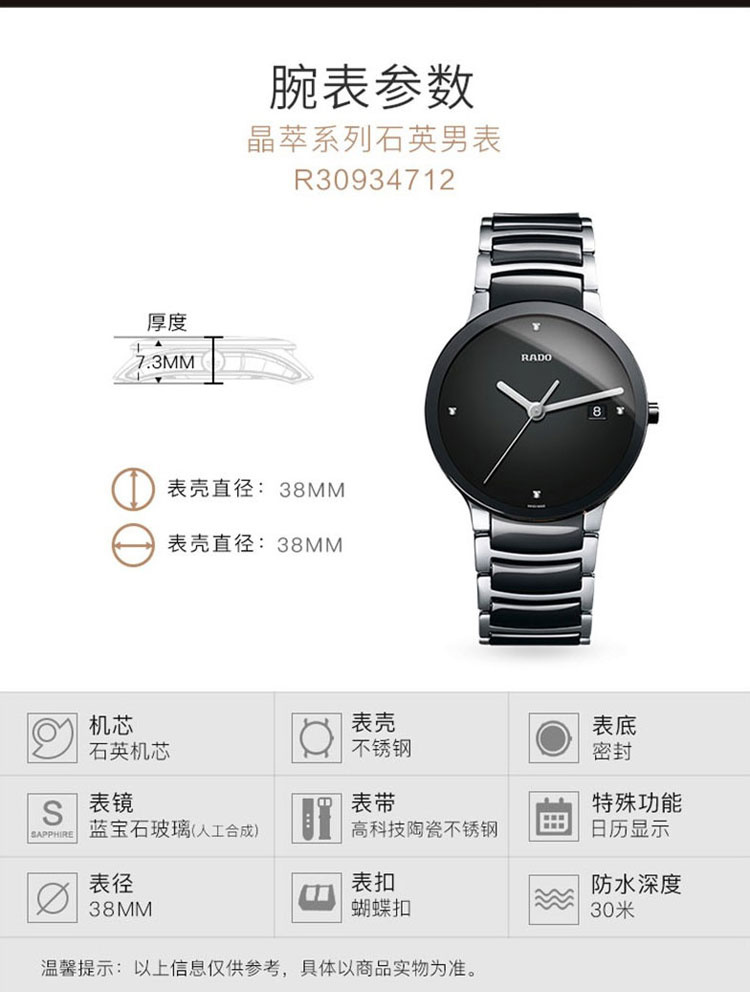 商品名称:雷达RADO 晶萃系列石英腕表情侣手表男女对表 R30554712