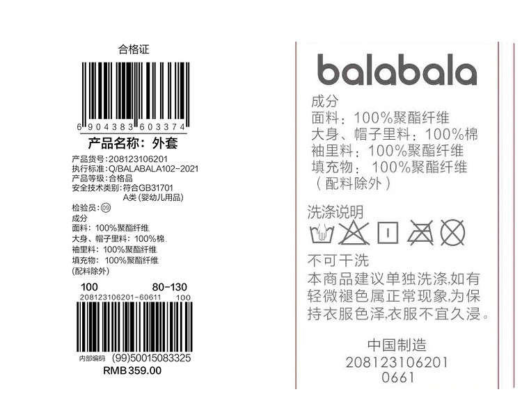 商品名称:【国风摇粒绒】男童棉衣外套女童棉服宝宝春秋 843205