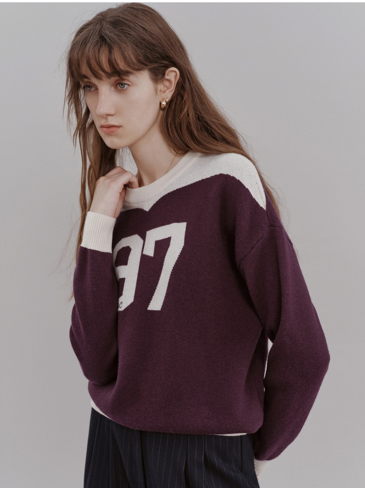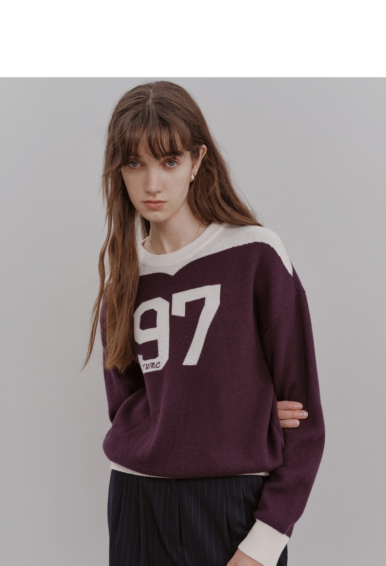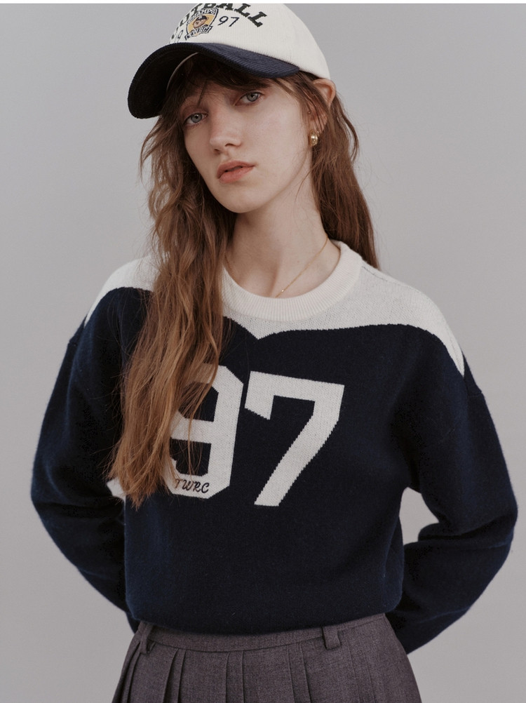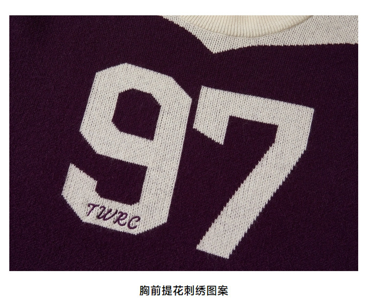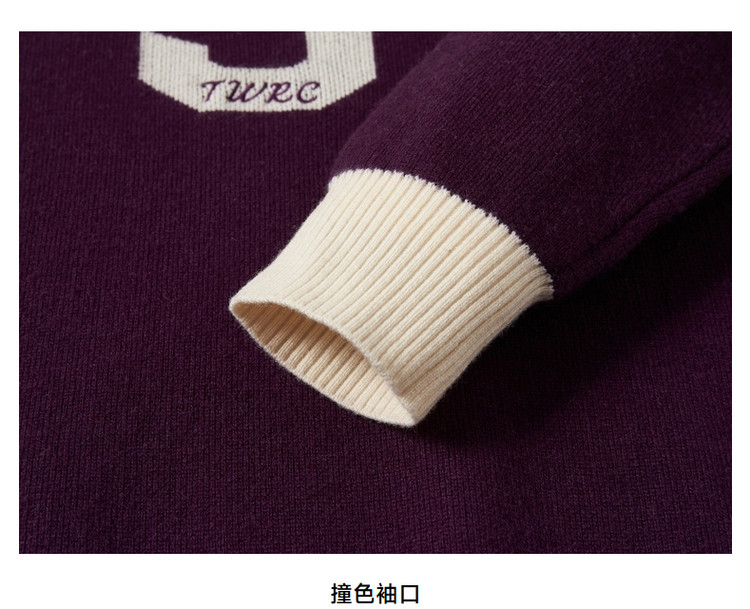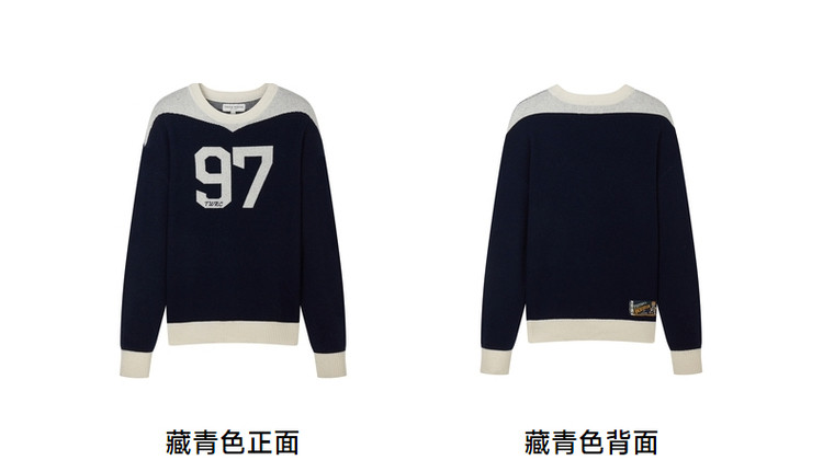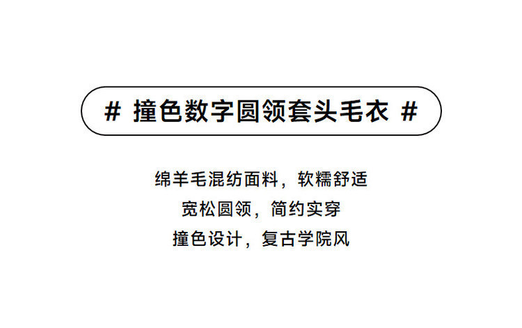商品名称:小熊春秋款撞色数字圆领套头毛衣绵羊毛混纺 005569