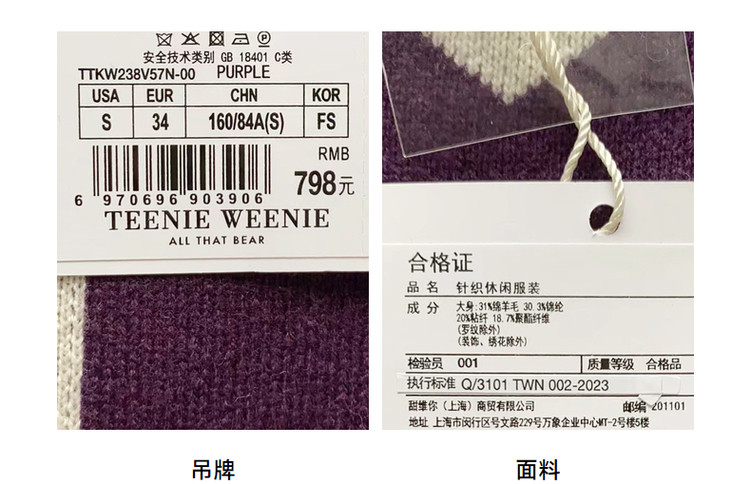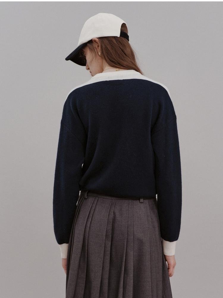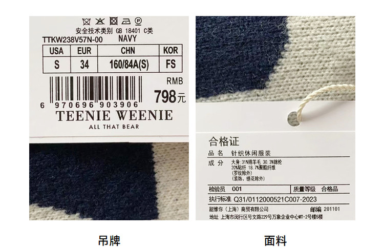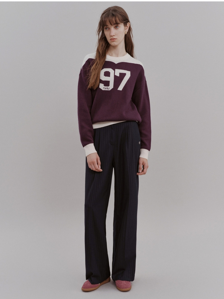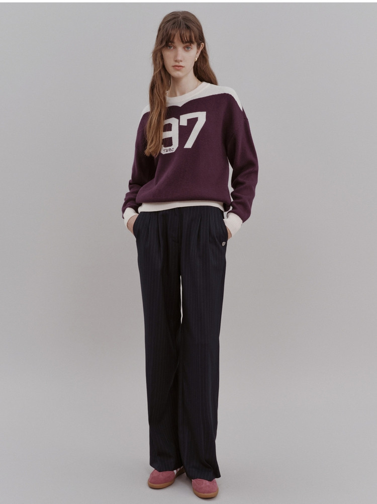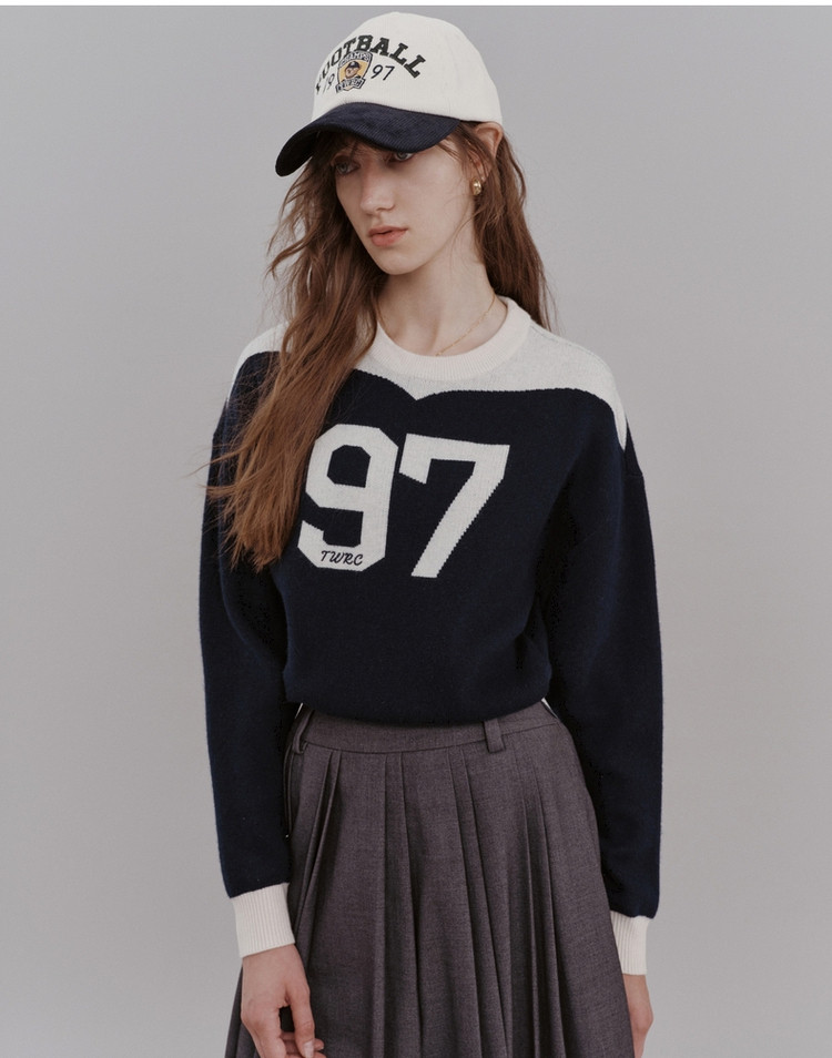 商品名称:小熊春秋款撞色数字圆领套头毛衣绵羊毛混纺 005569