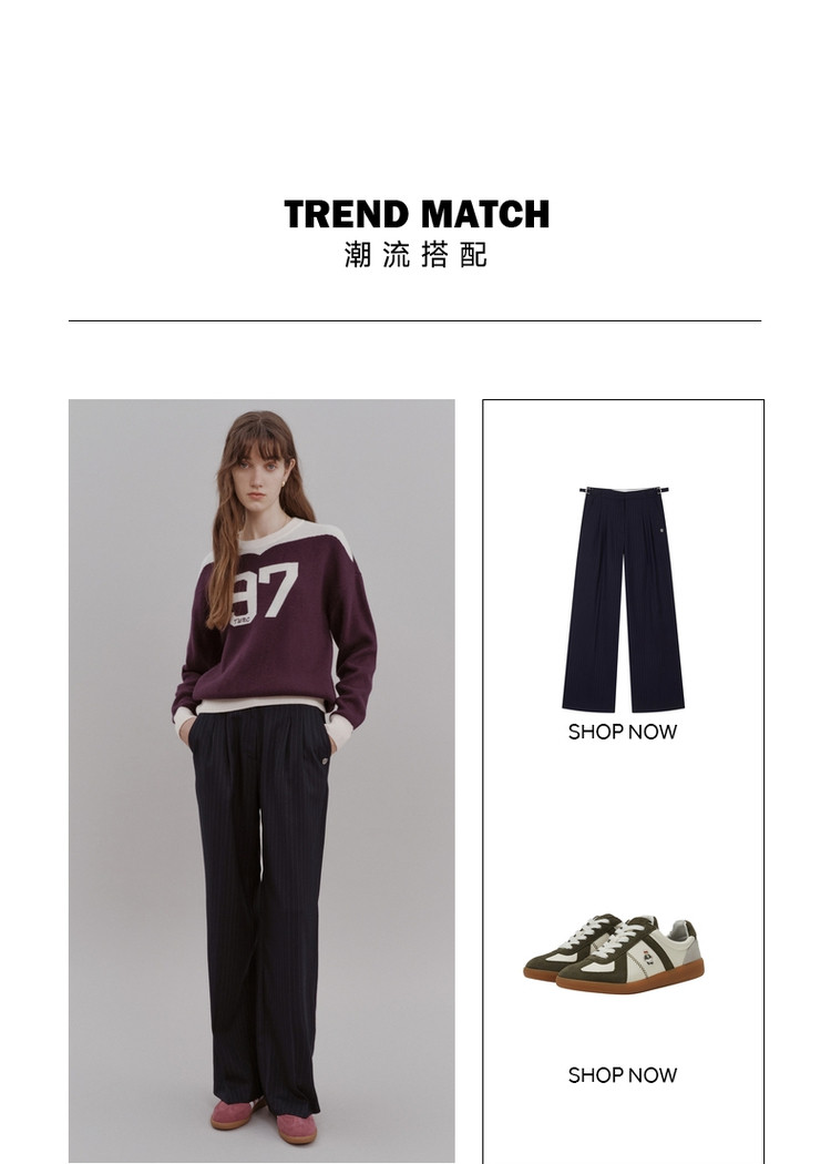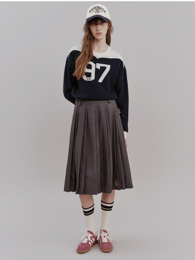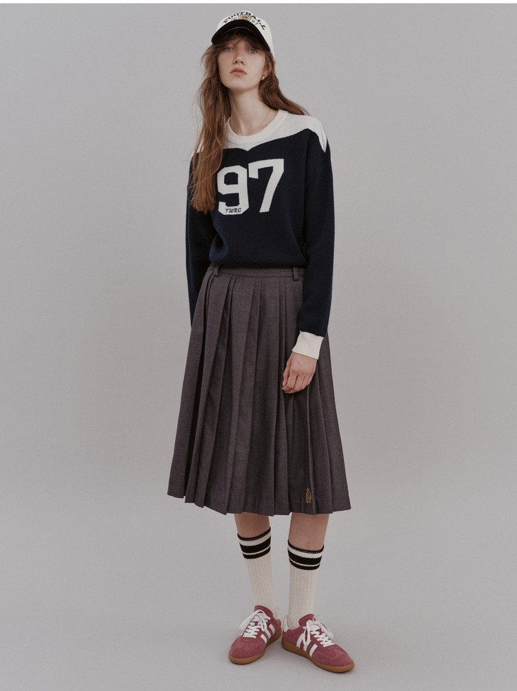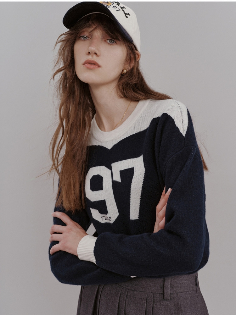 小熊春秋款撞色数字圆领套头毛衣绵羊毛混纺 005569