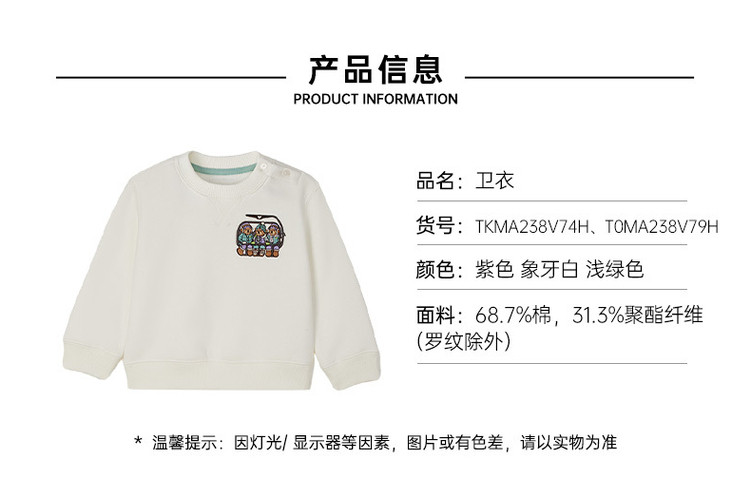 商品名称:小熊童装春款男女童宝宝套头卫衣 136577