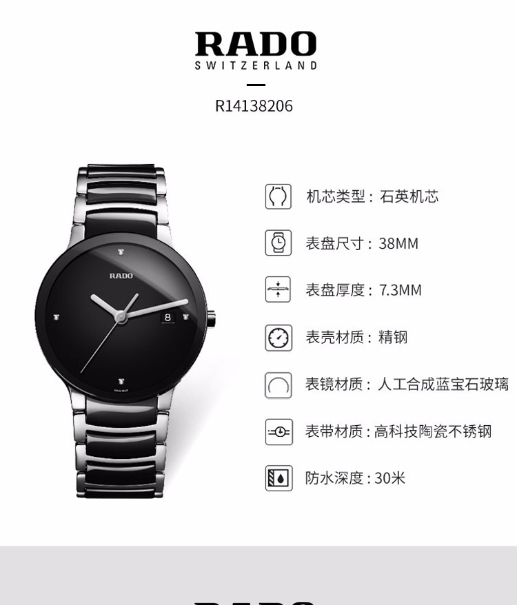 商品名称:RADO雷达 晶萃系列石英表男表男士腕表 R30927713