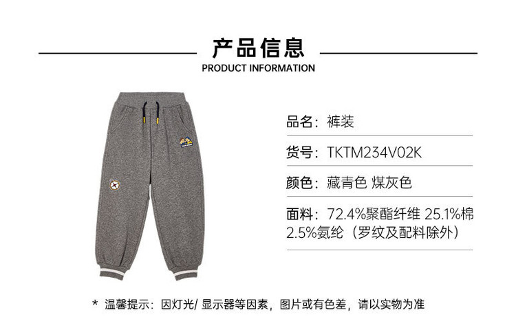 商品名称:小熊童装春季男童银狐绒系绳束脚卫裤 234049