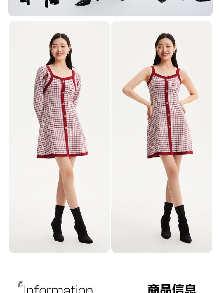 商品名称:一衣三穿两件套年小香风针织连衣裙气质百搭时尚春夏 118993