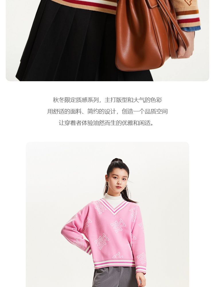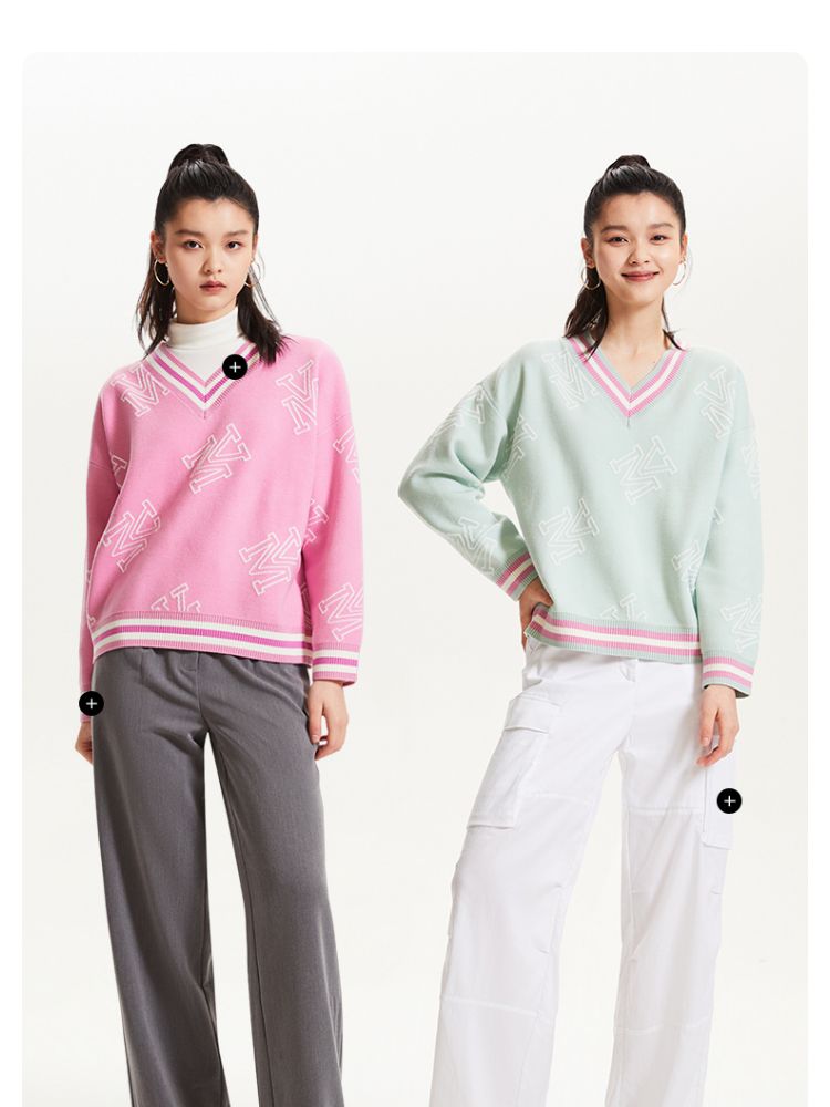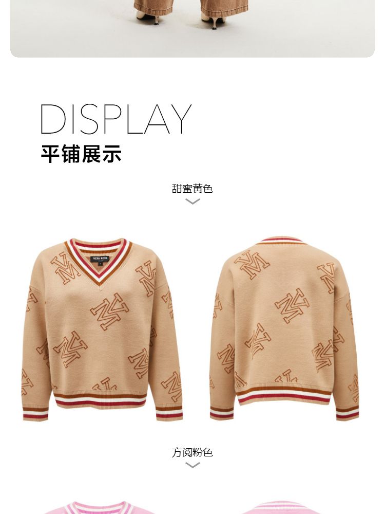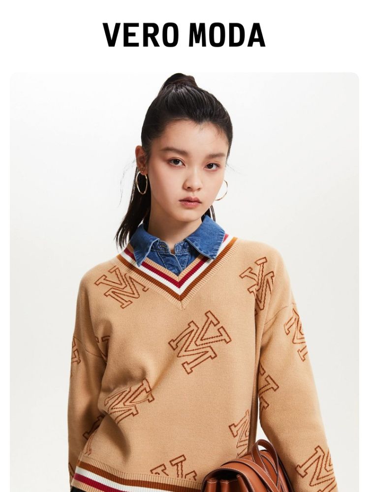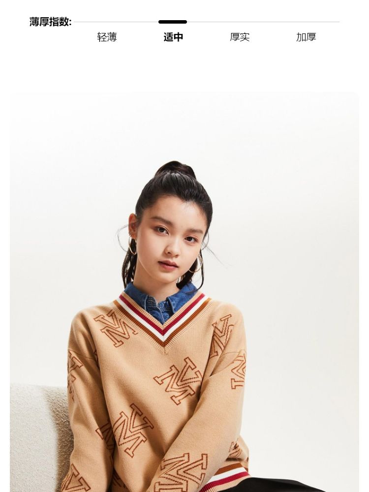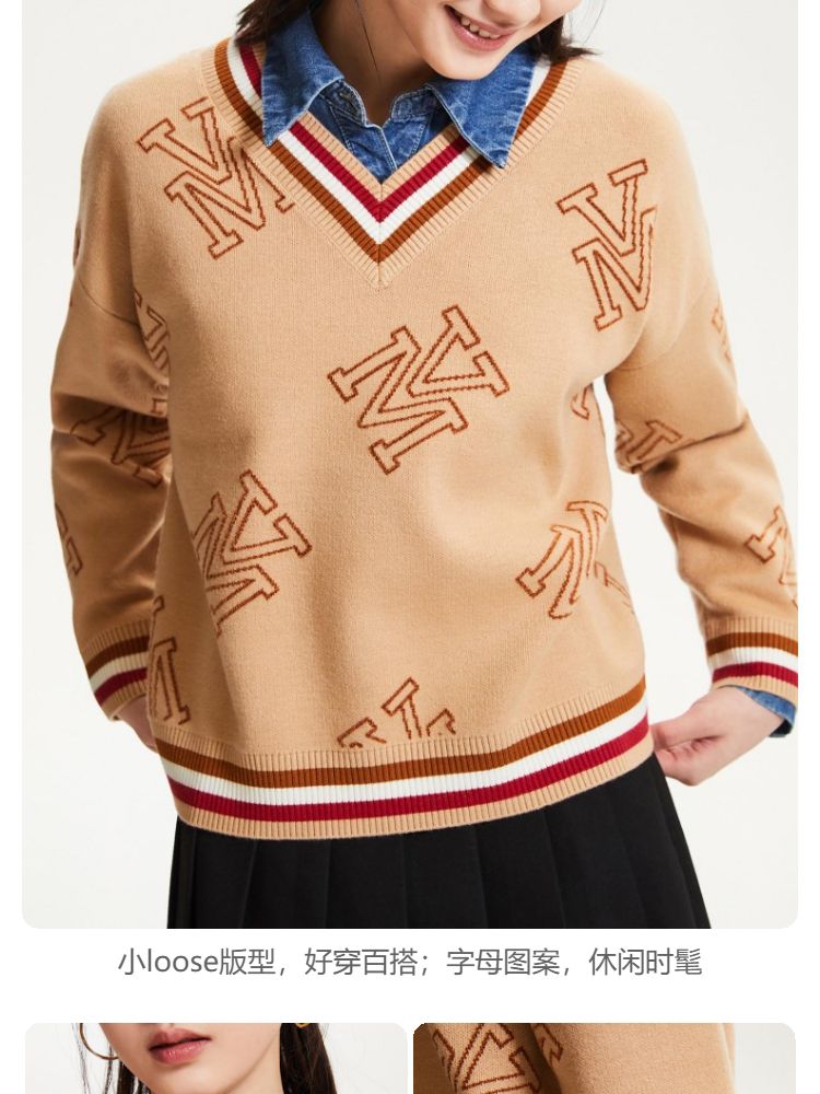 商品名称:宽松V领印花毛衣休闲学院风针织衫气质百搭时尚春夏 253457