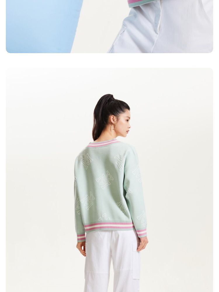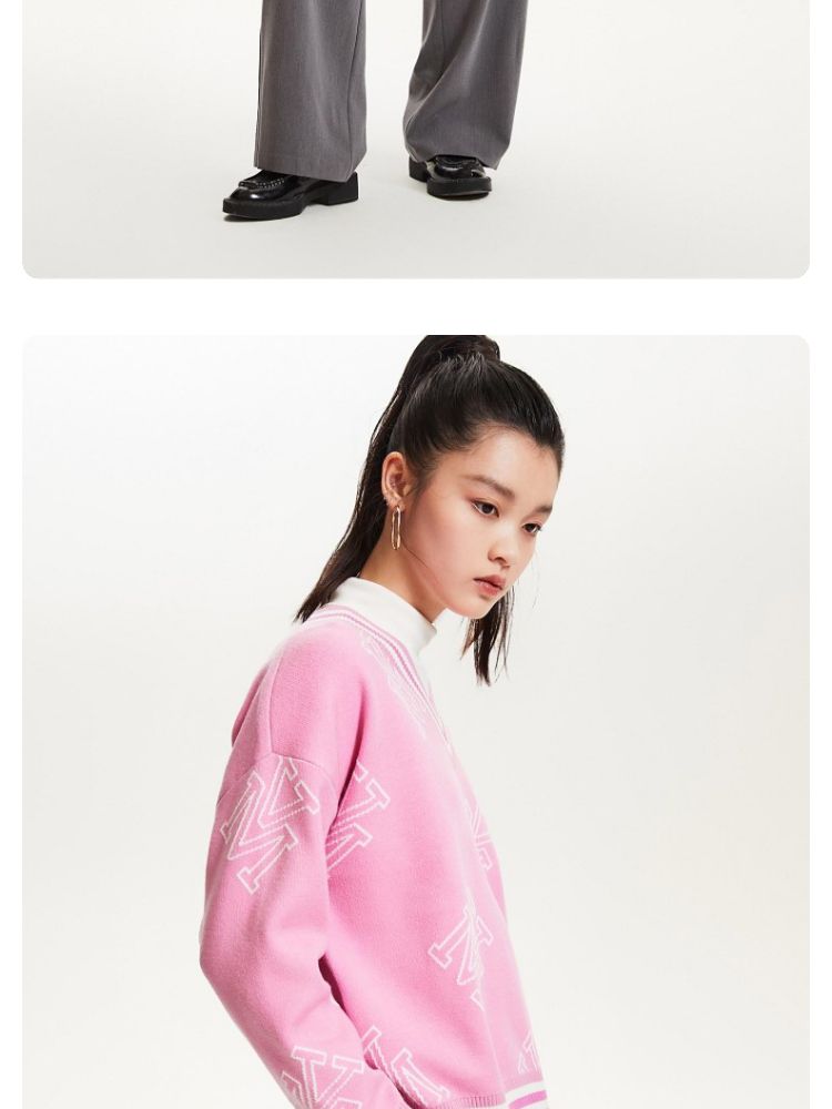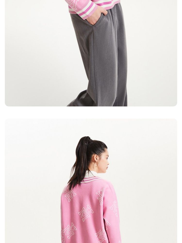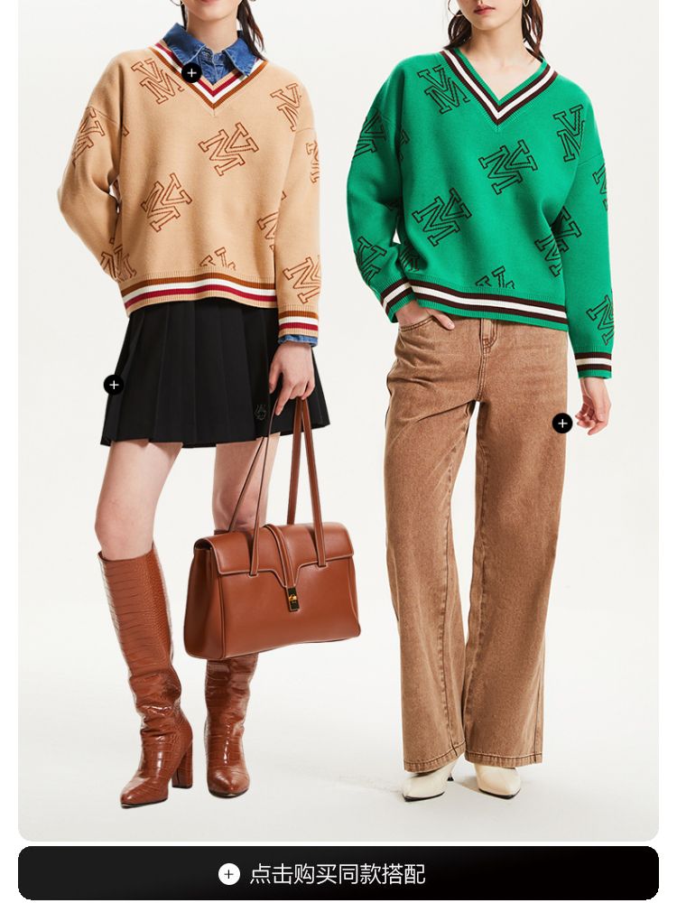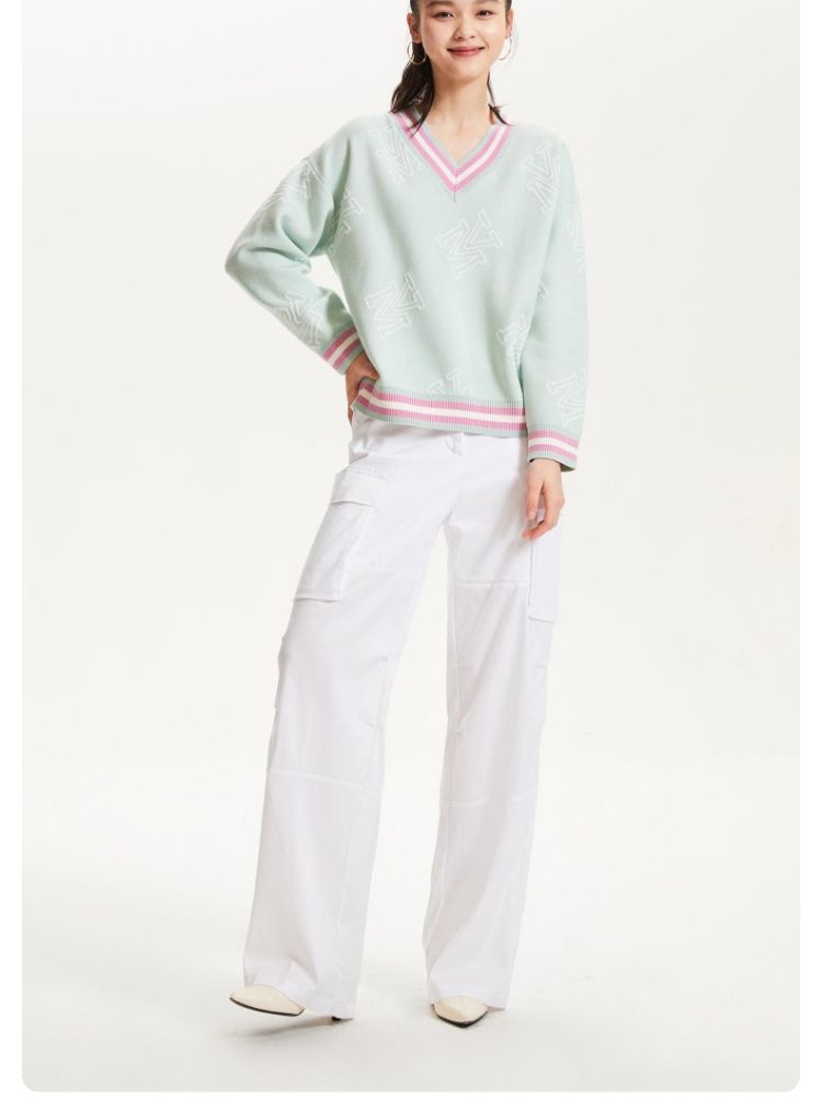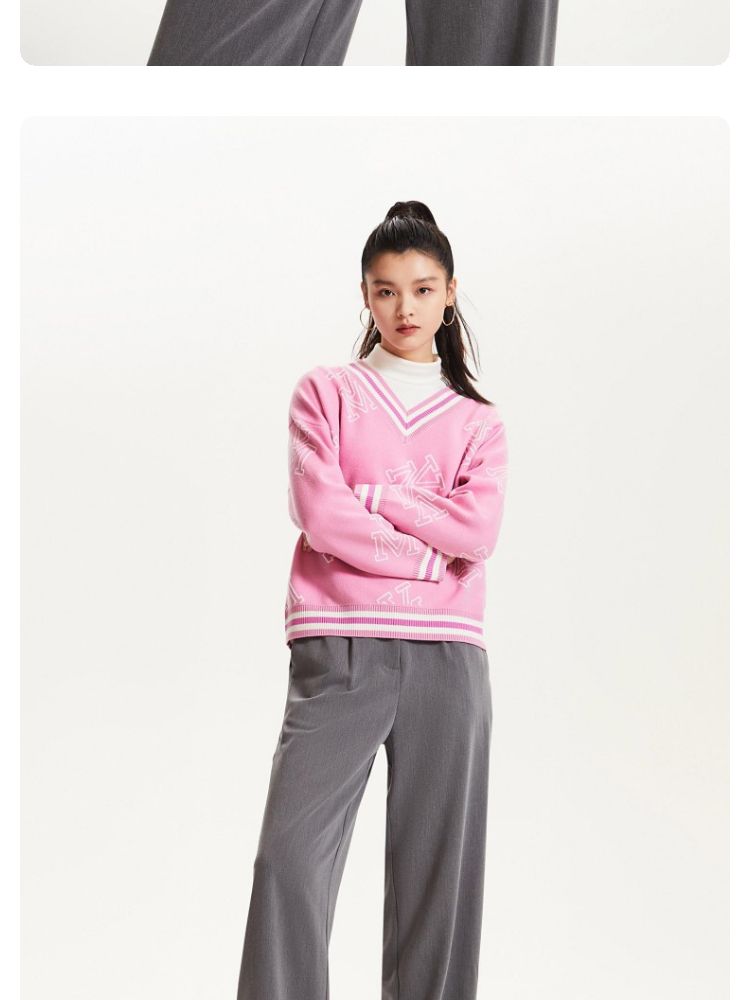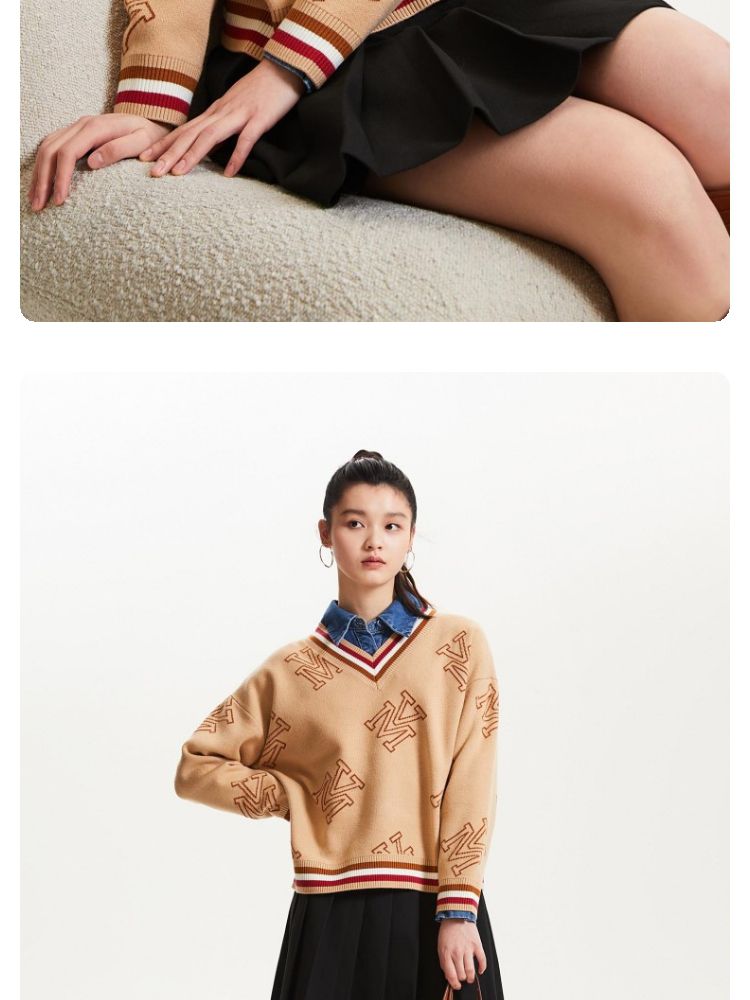 商品名称:宽松V领印花毛衣休闲学院风针织衫气质百搭时尚春夏 253457
