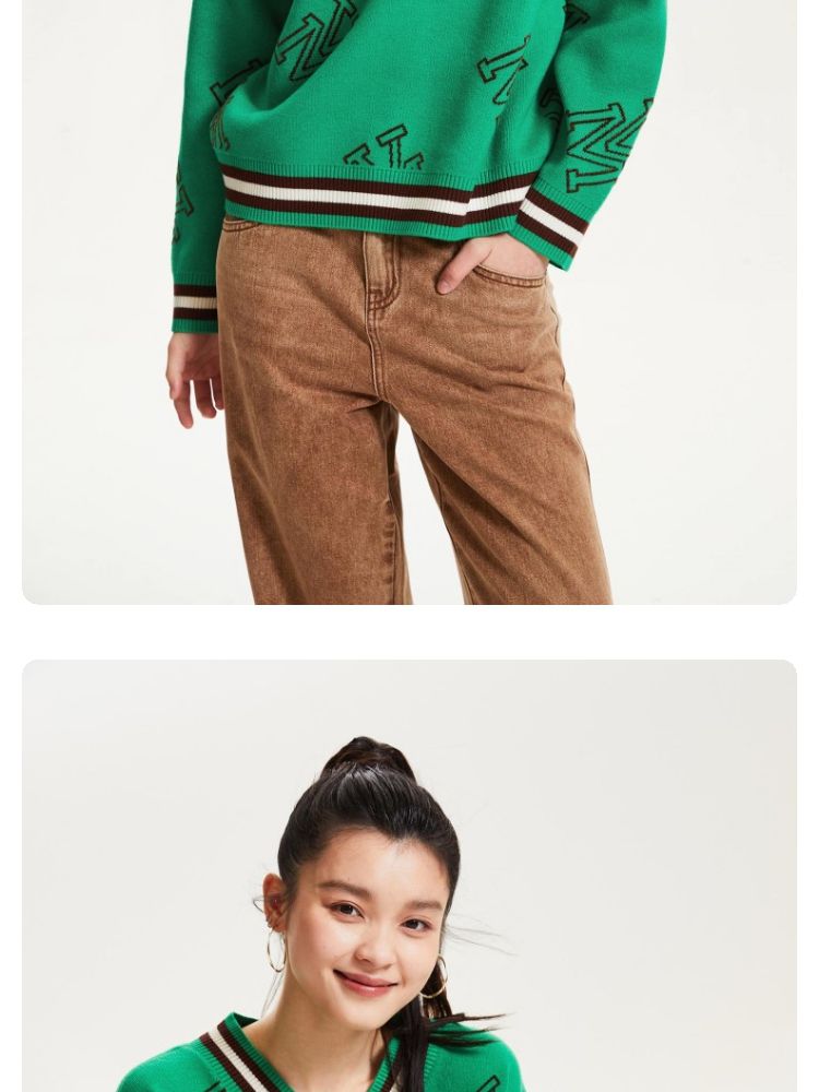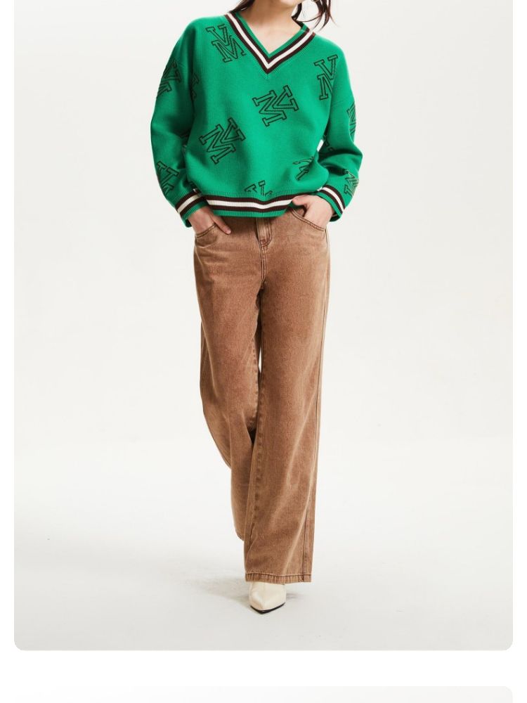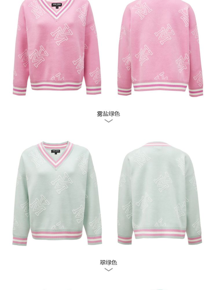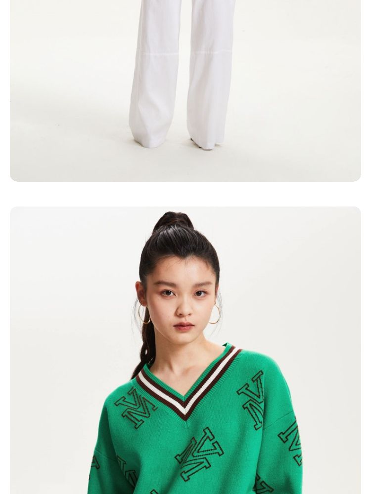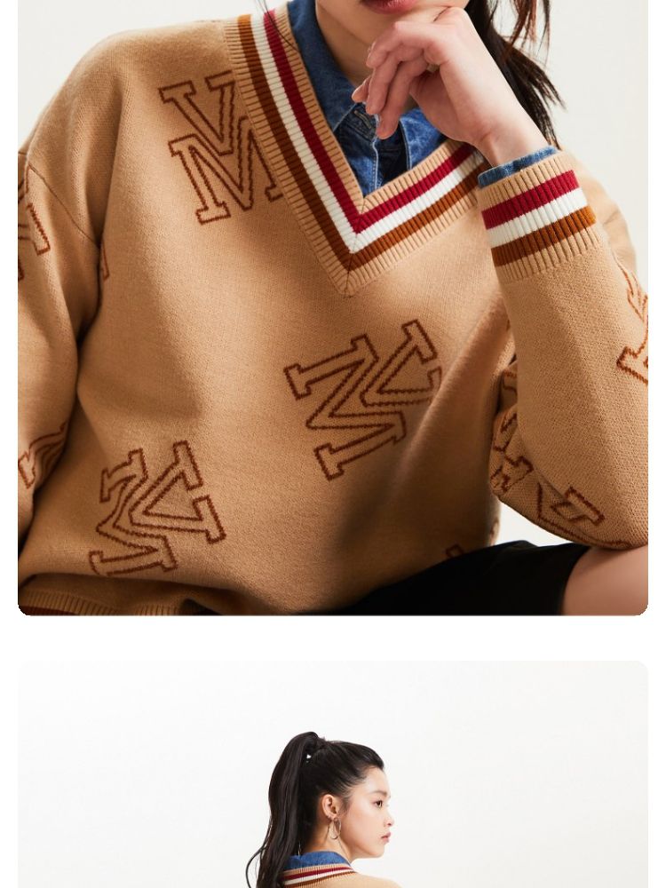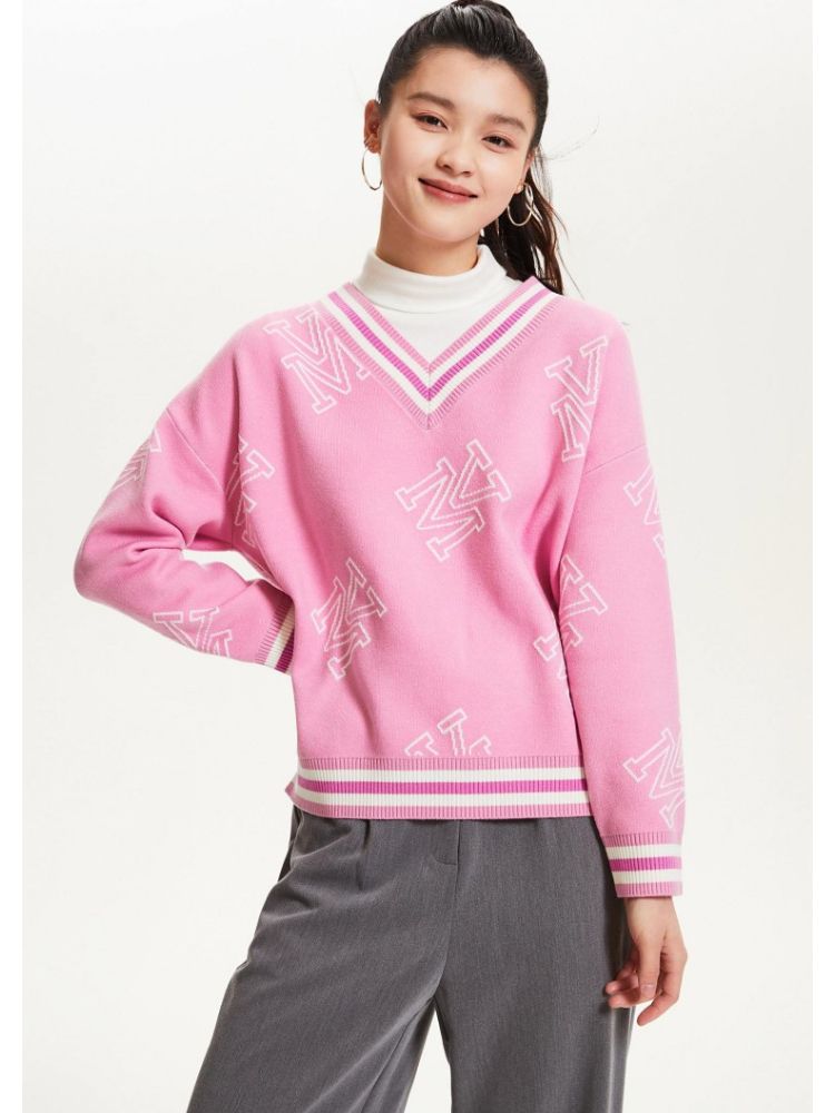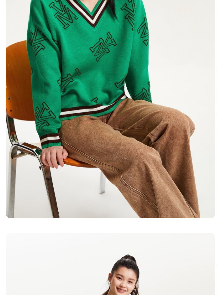 宽松V领印花毛衣休闲学院风针织衫气质百搭时尚春夏 253457