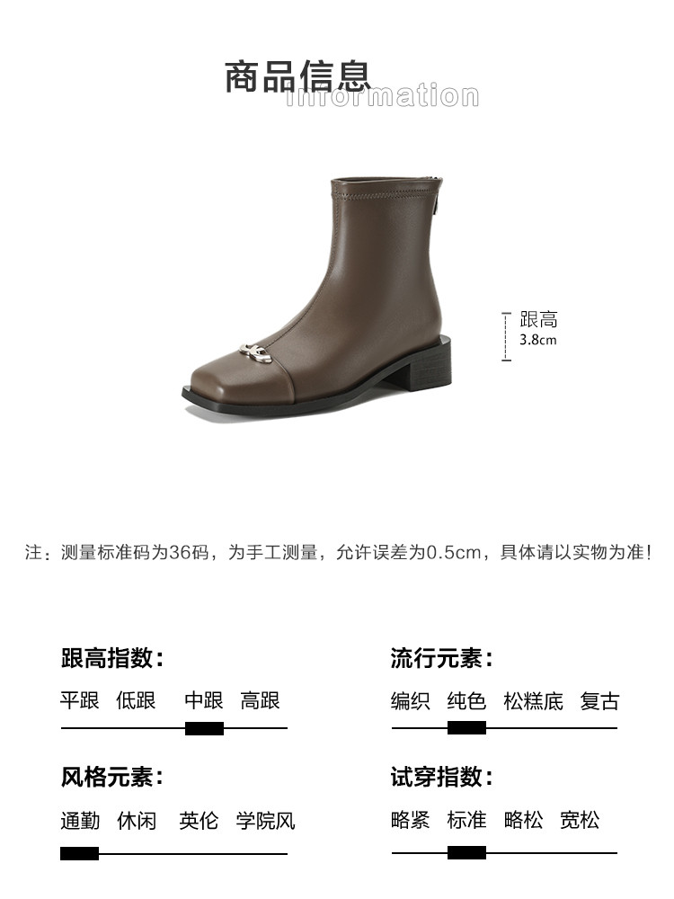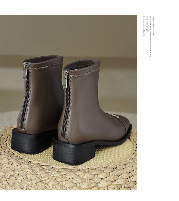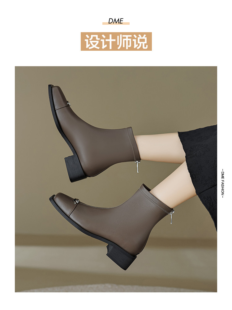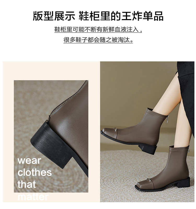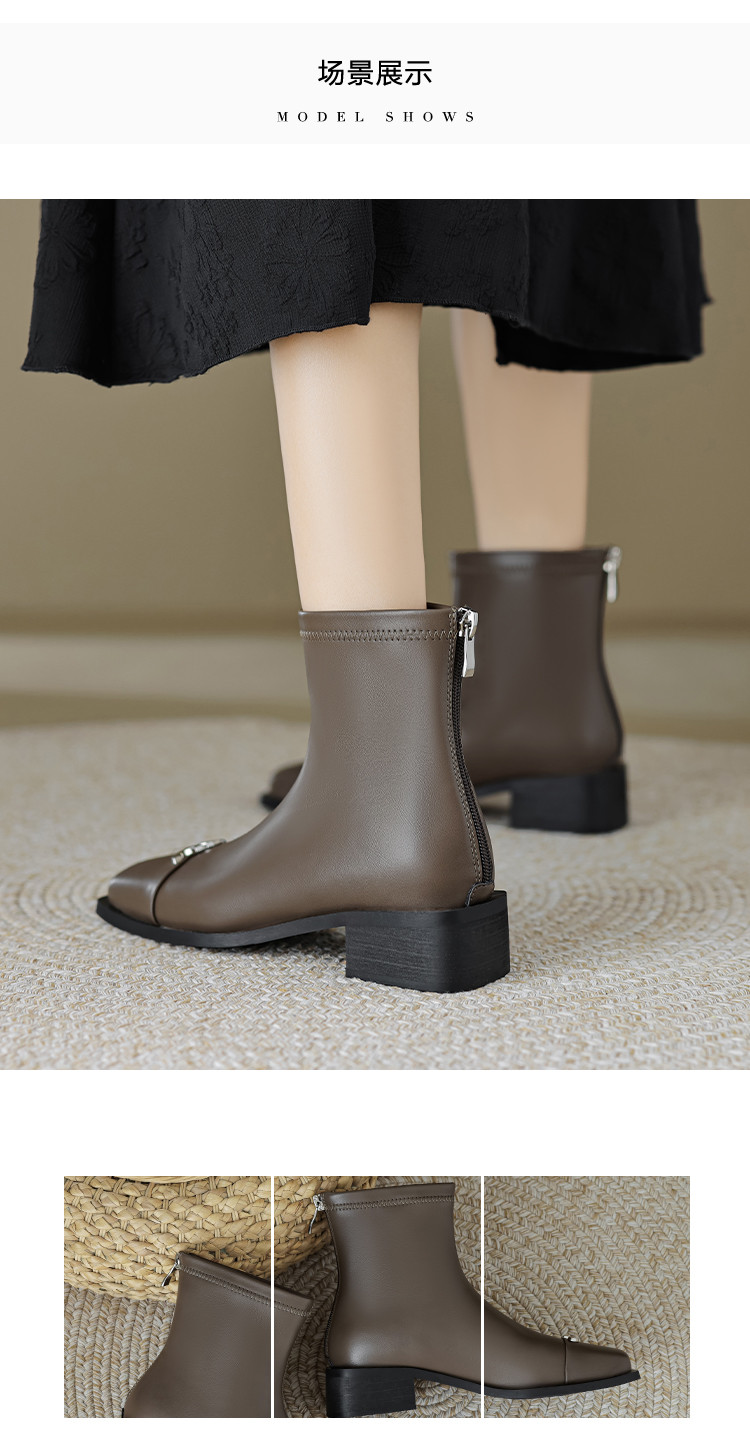 商品名称:春简约百搭方头后拉链金属饰扣日常通勤瘦瘦靴女靴 337025