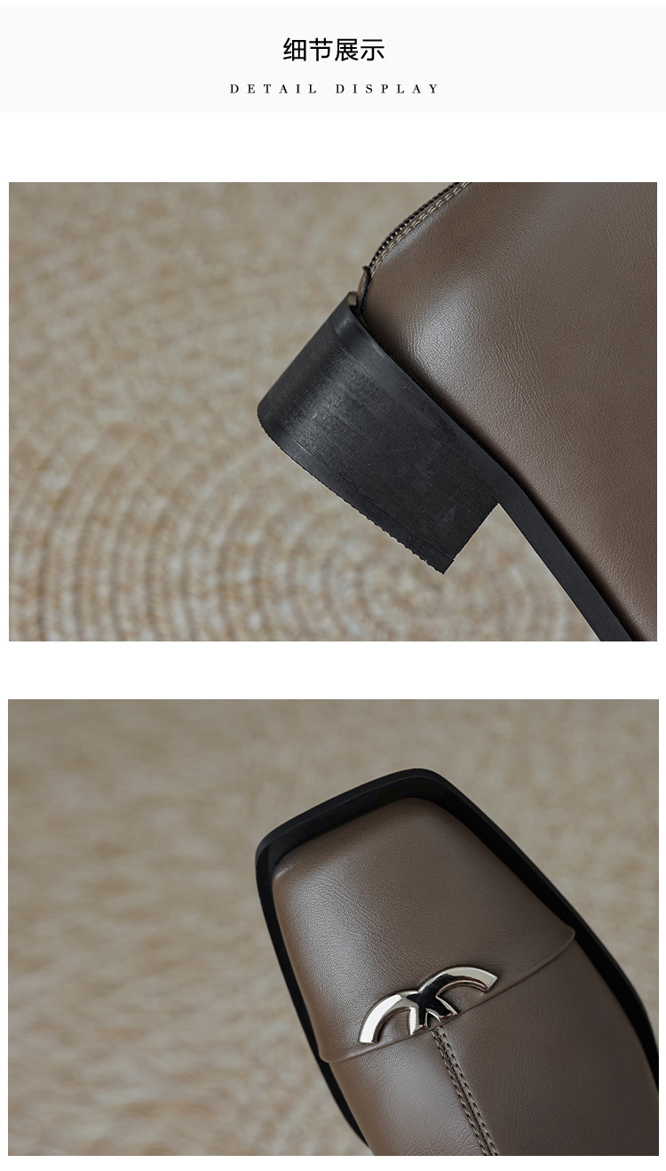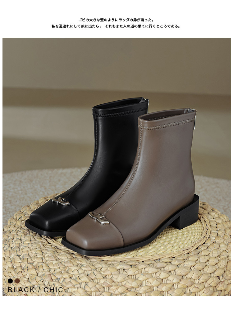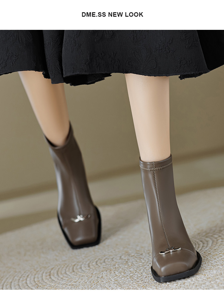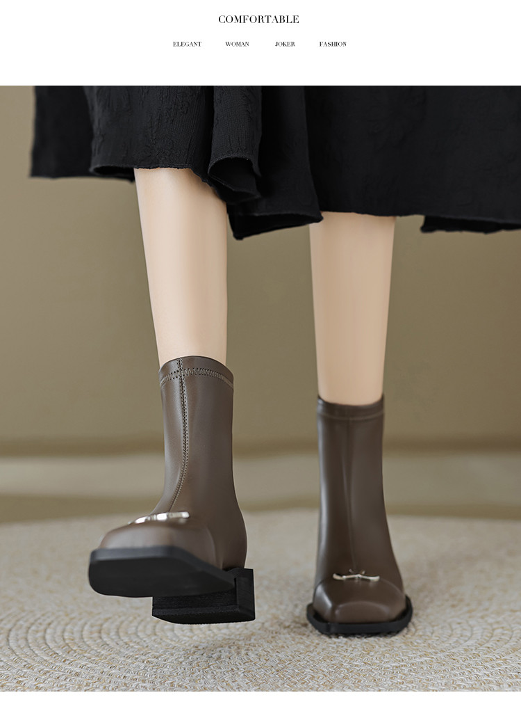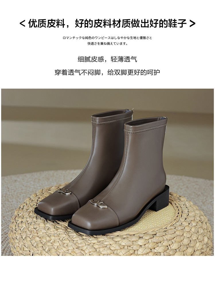 商品名称:春简约百搭方头后拉链金属饰扣日常通勤瘦瘦靴女靴 337025