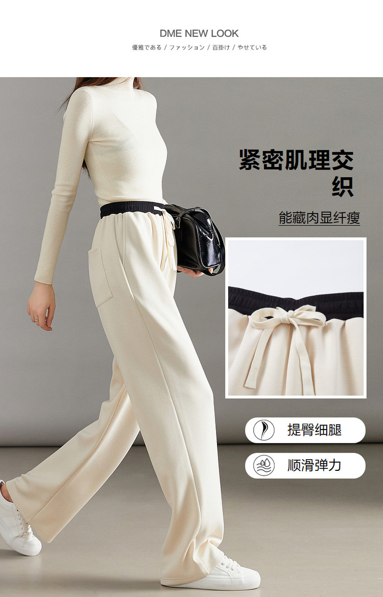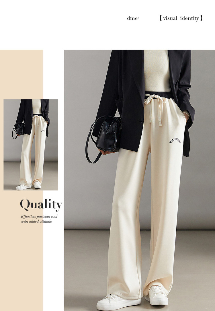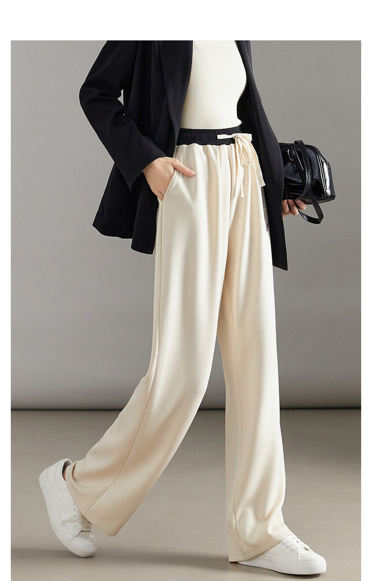 【简约抽绳直筒裤】秋通勤中腰女裤子女长裤微弹休闲裤 210689