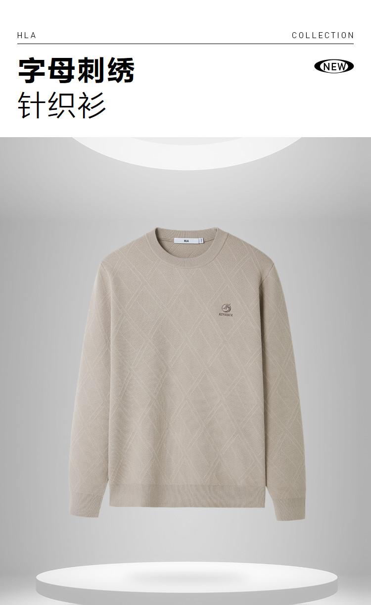 商品名称:【反季】冬季包芯纱刺绣圆领提花加厚修身男士针织衫 234696