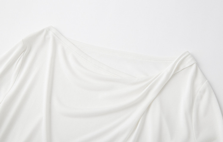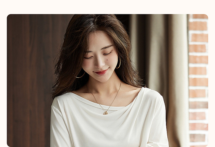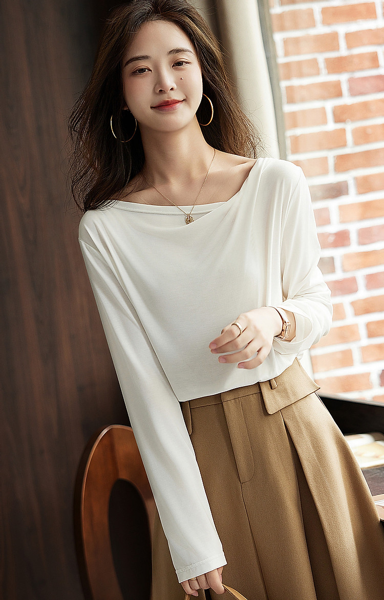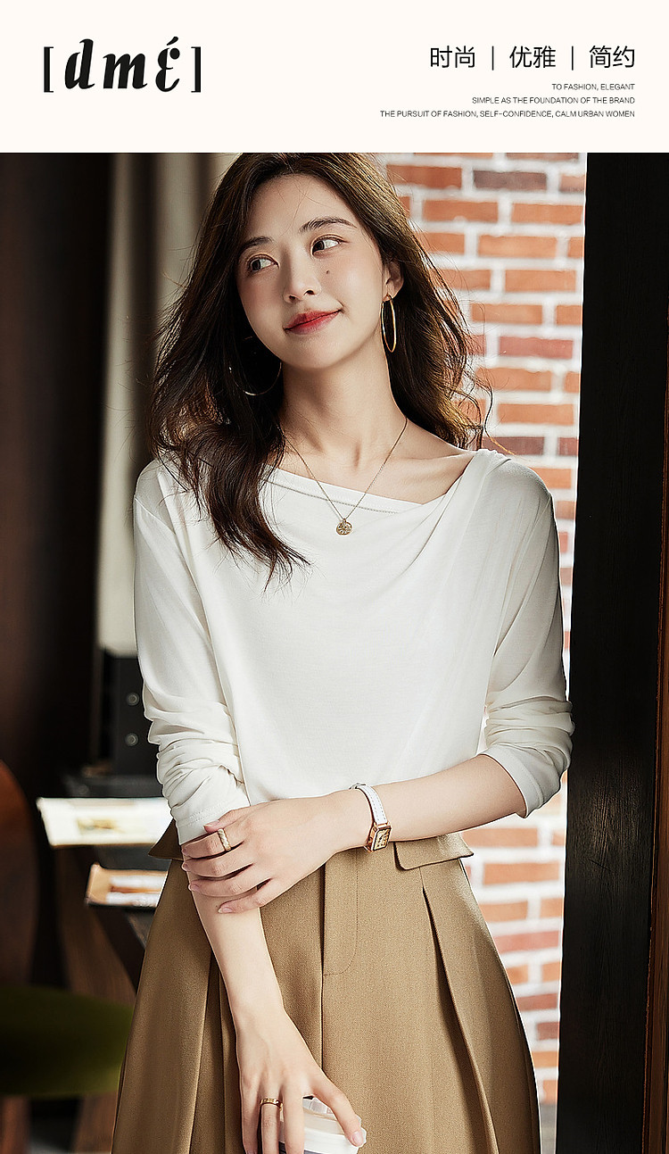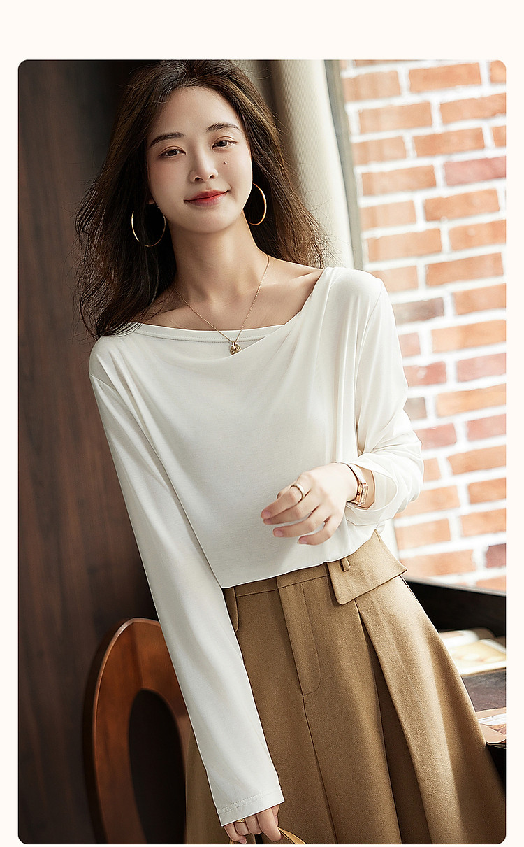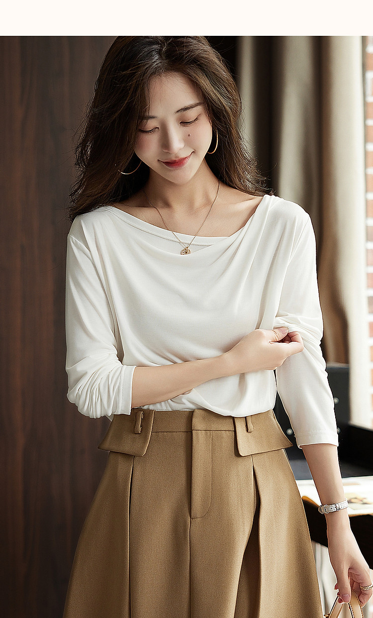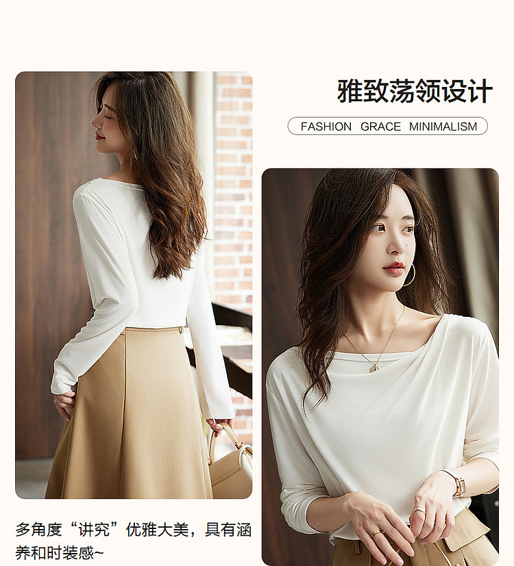 商品名称:【简约风荡领女式t恤】春秋微弹气质连肩中袖t恤女 100737