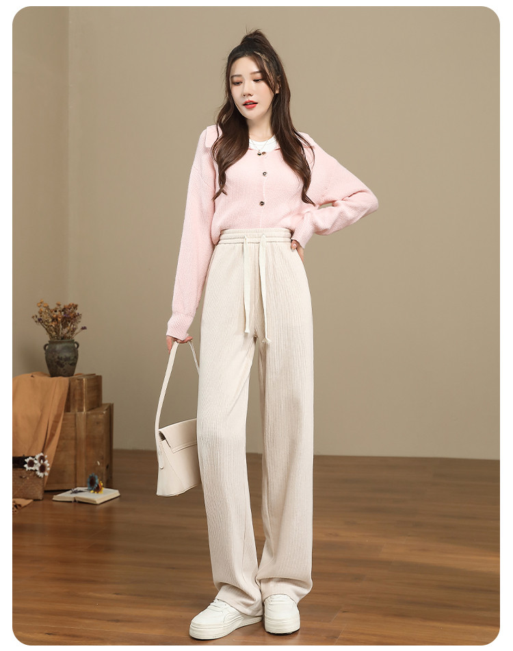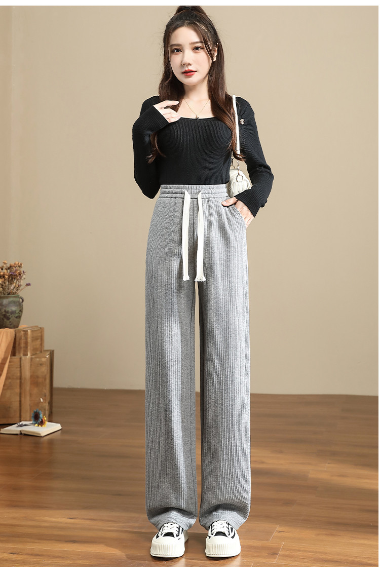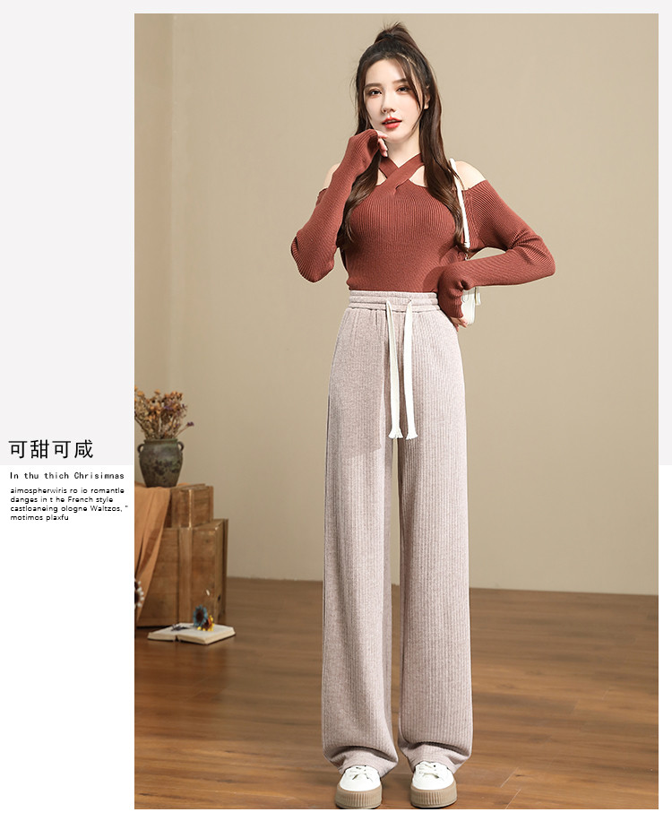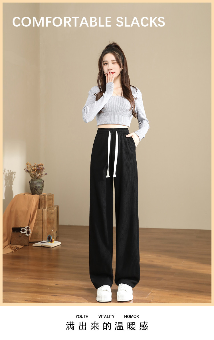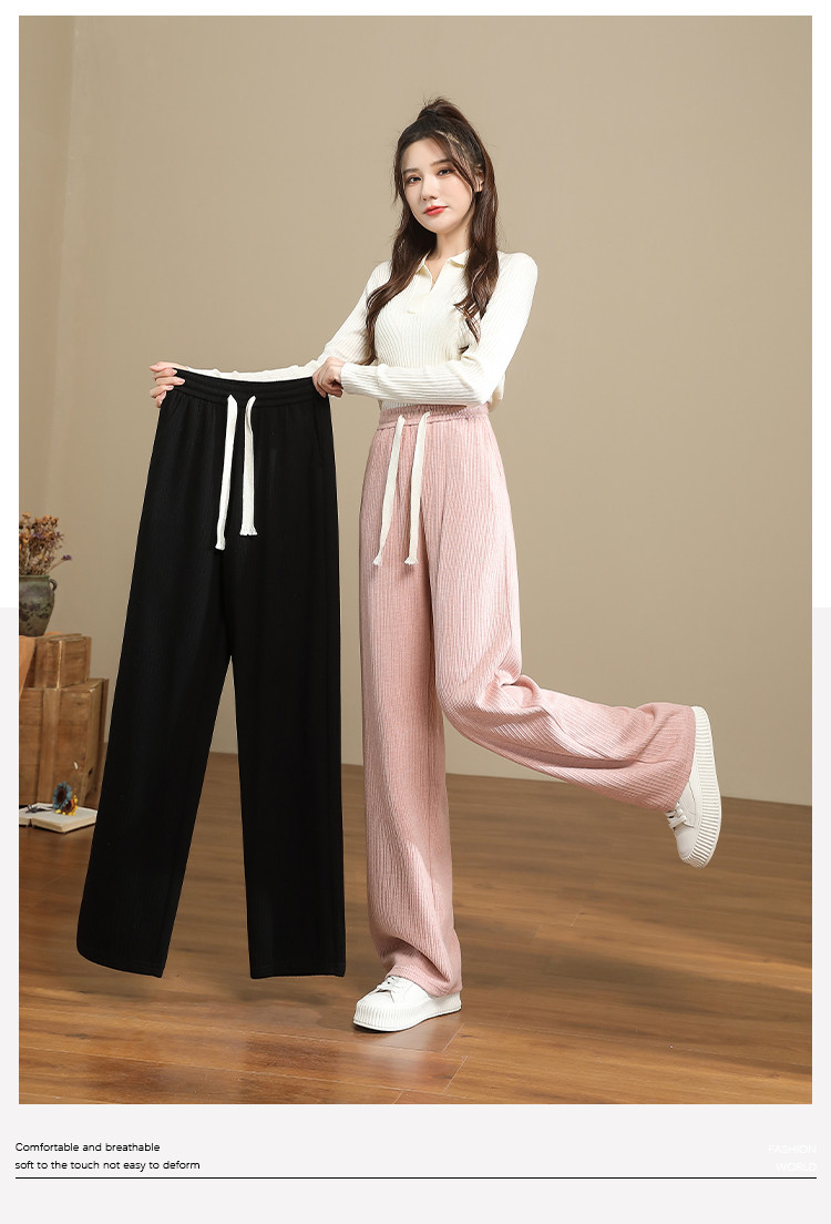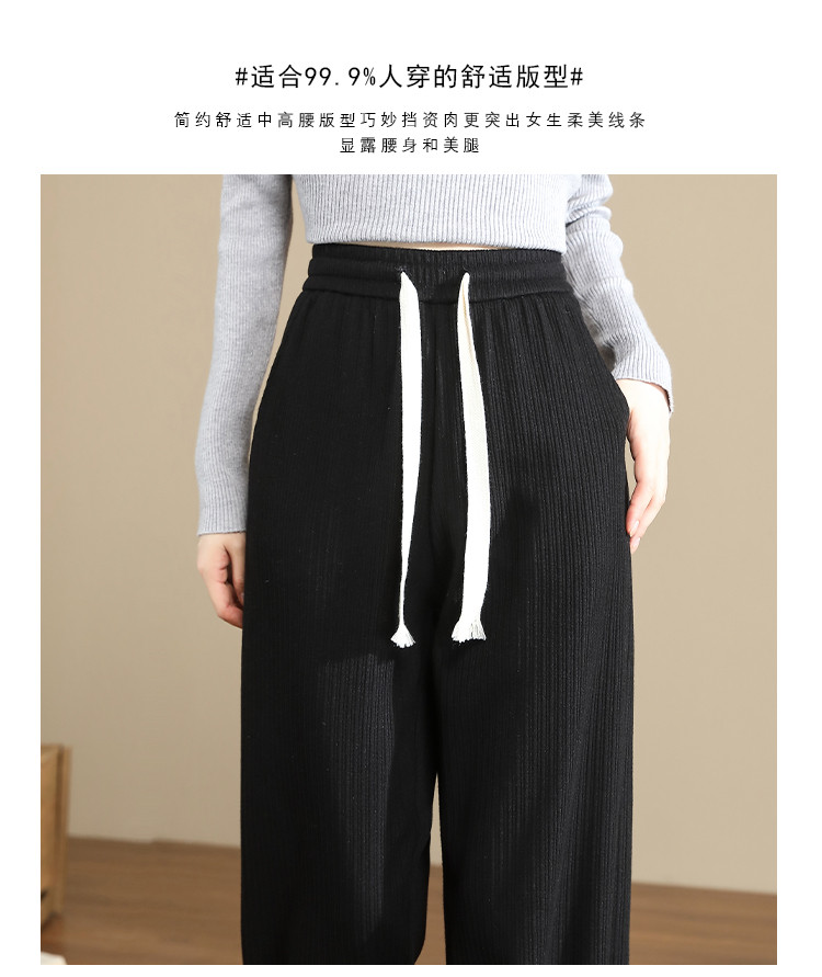 商品名称:春秋爆款高腰显瘦休闲简约时尚抽绳宽松时尚纯色女式休闲阔脚裤潮 517249