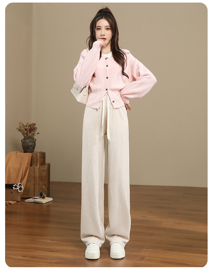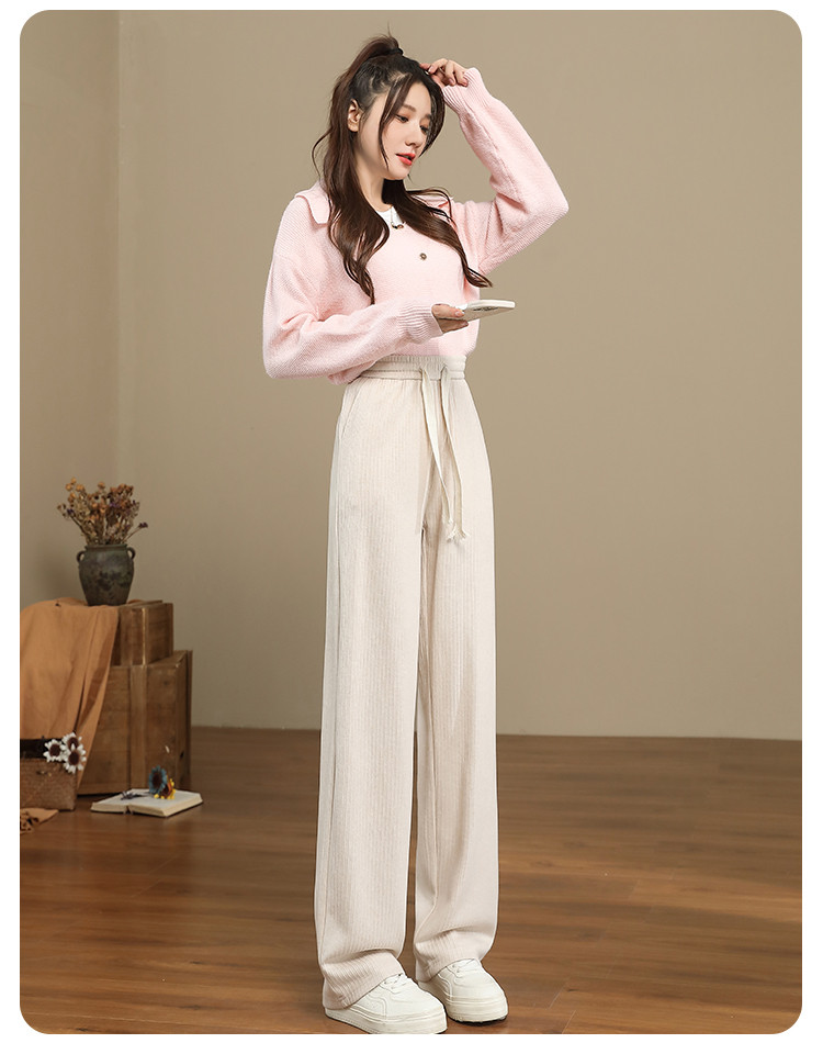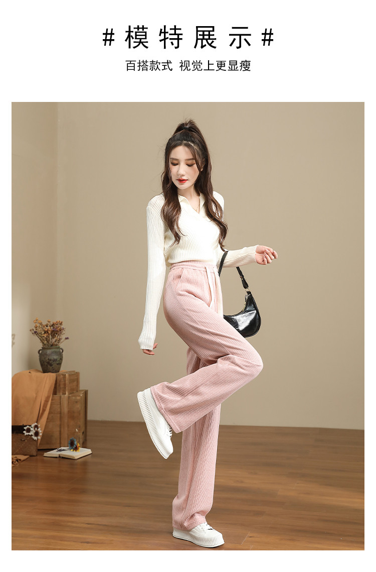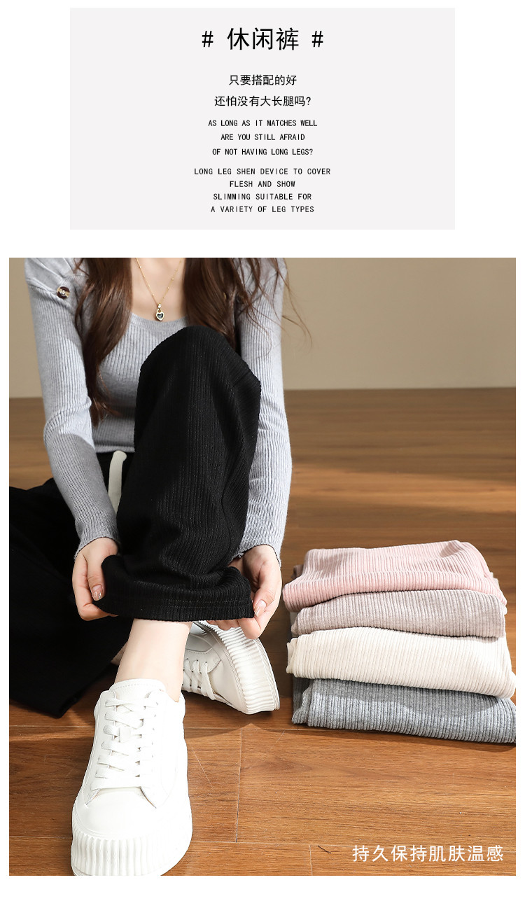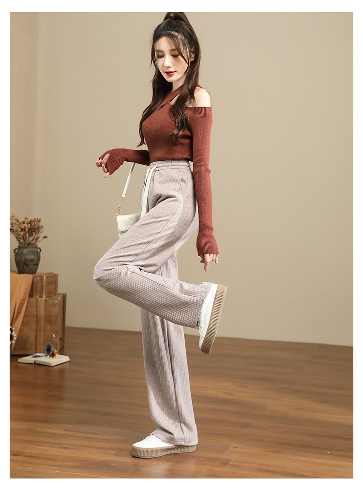 商品名称:春秋爆款高腰显瘦休闲简约时尚抽绳宽松时尚纯色女式休闲阔脚裤潮 517249