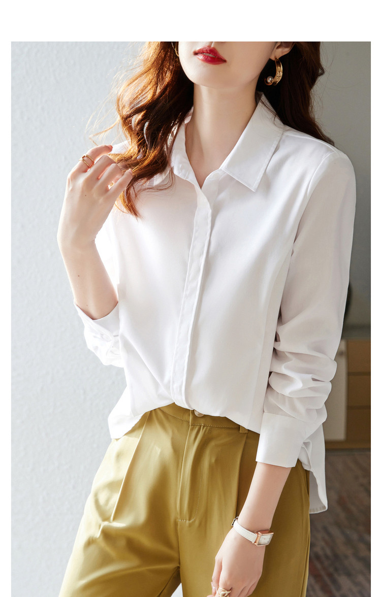 【分割裁剪】春季通勤云感棉设计感翻领长袖衬衫藏肉衬衣女式上衣 122625