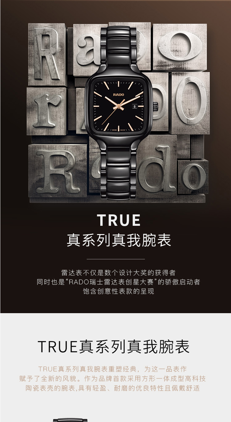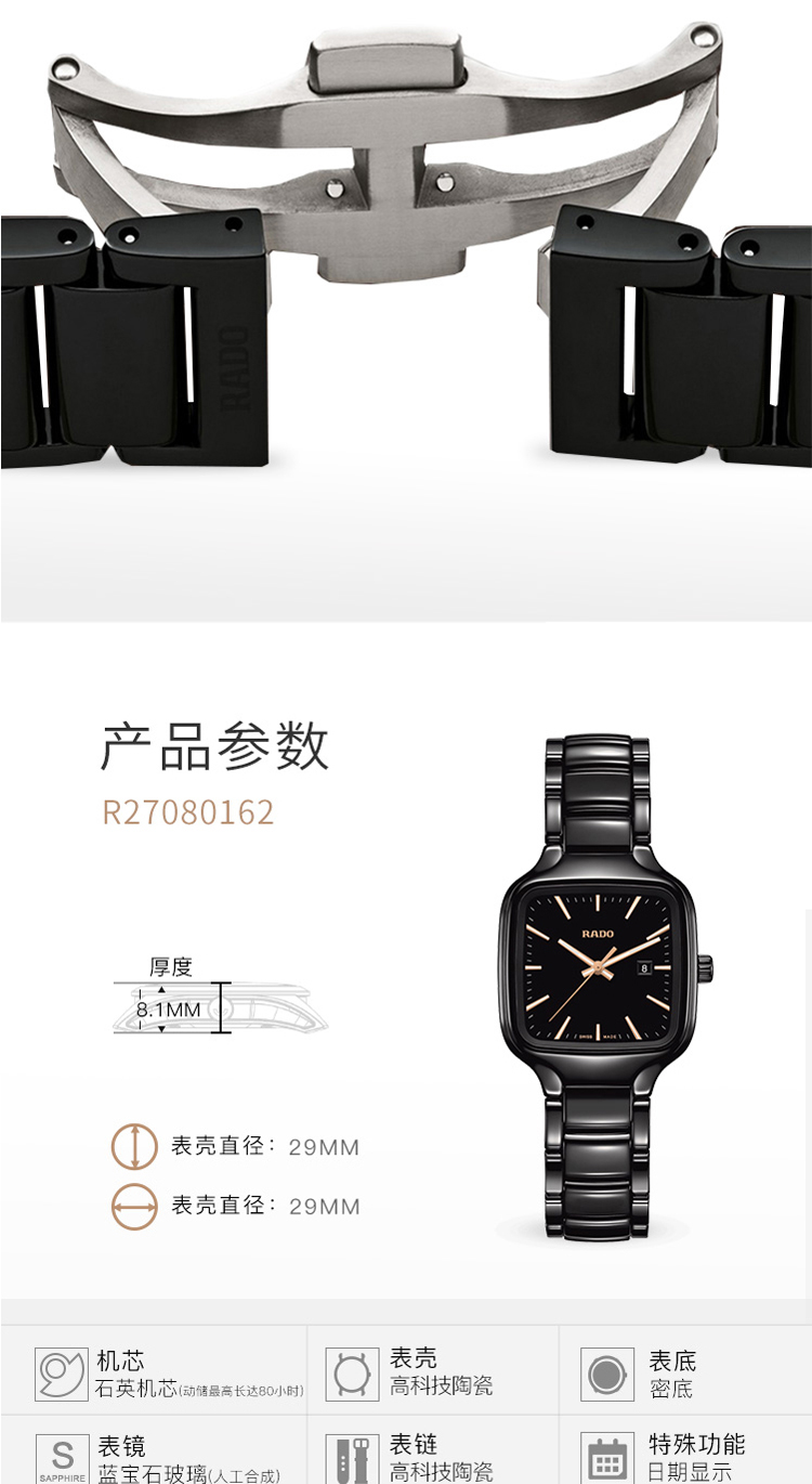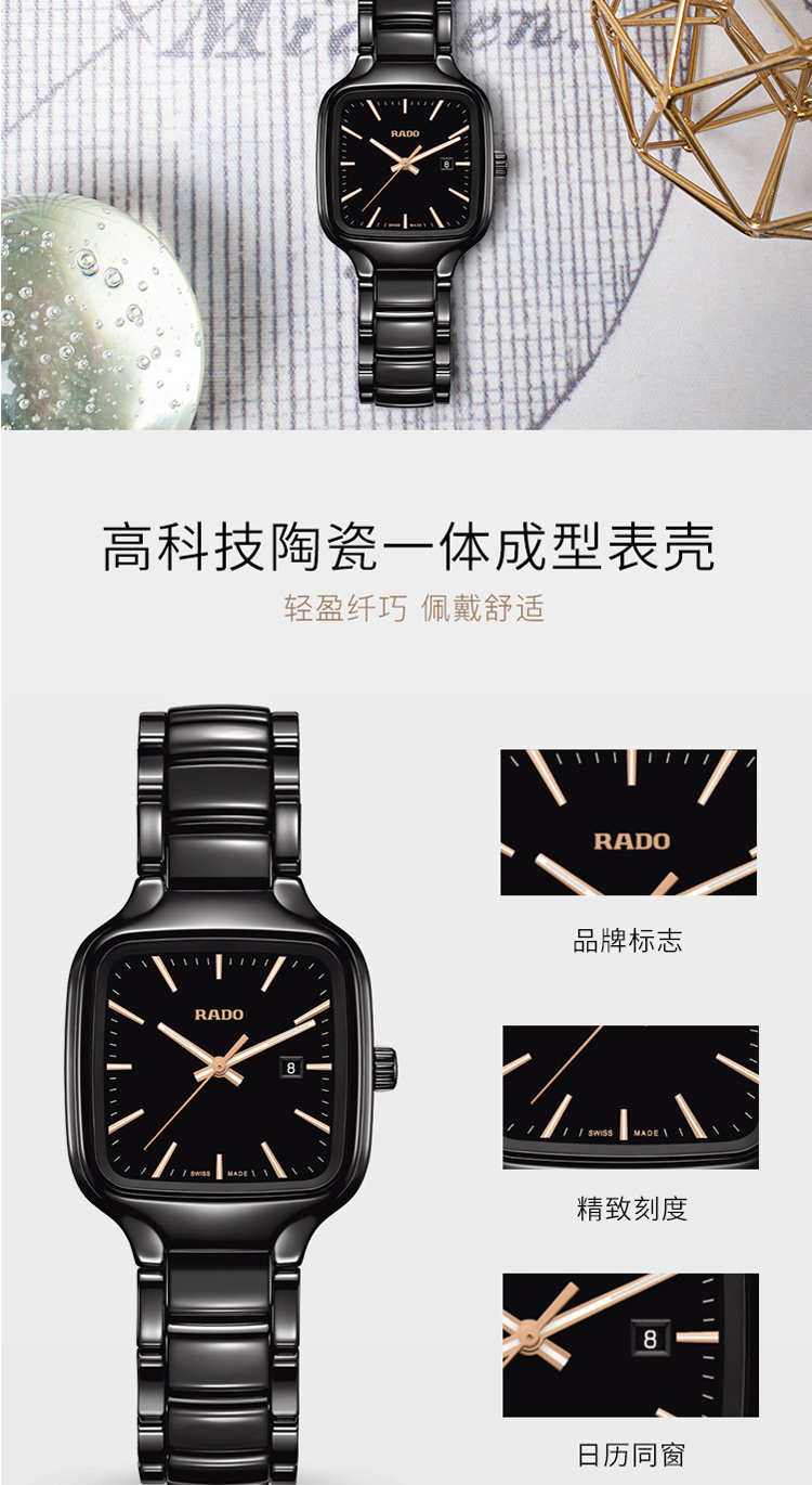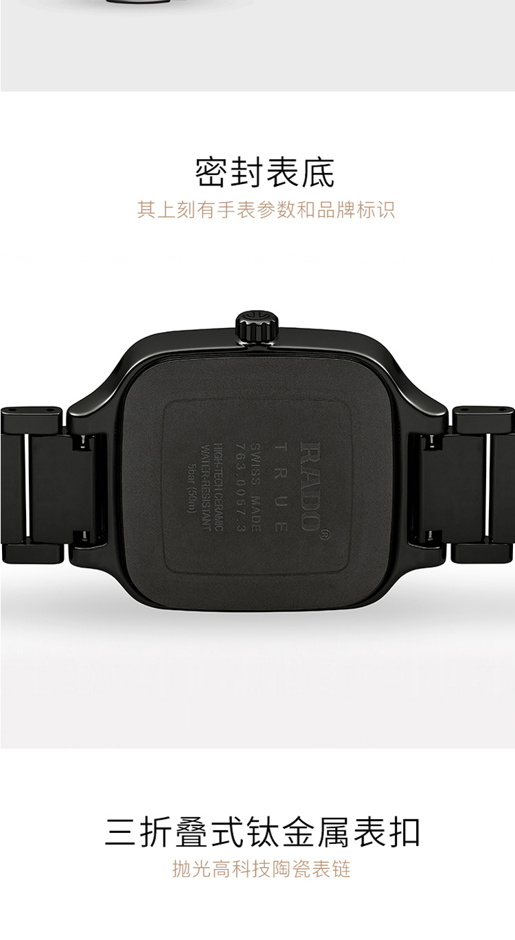 商品名称:RADO雷达 真系列高科技陶瓷现代简约风格自动机械男士腕表(38mm) R27078162