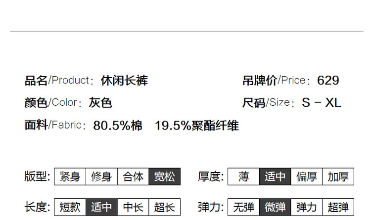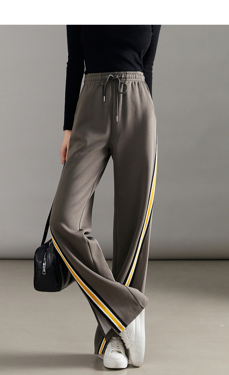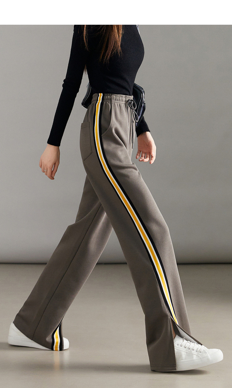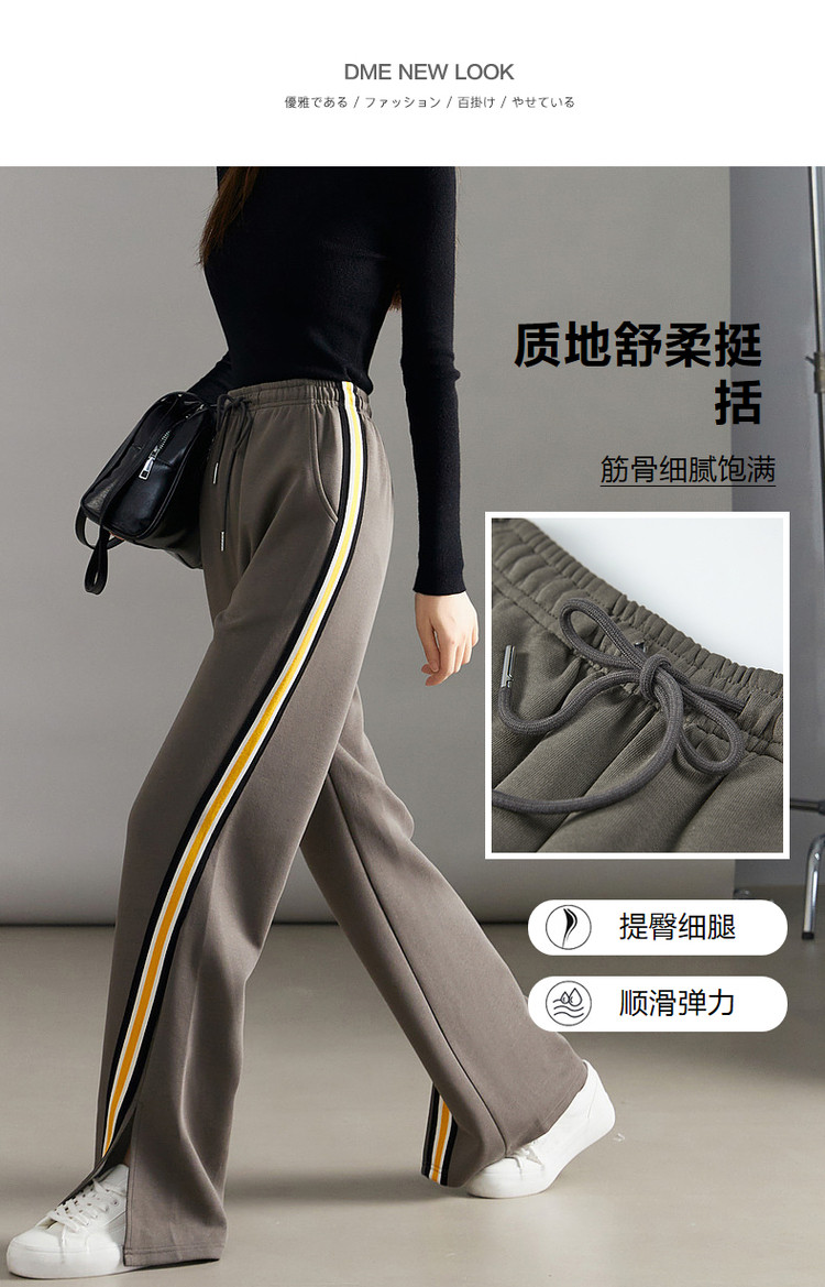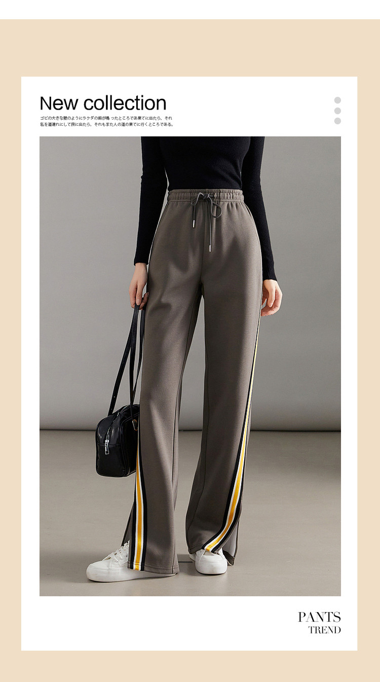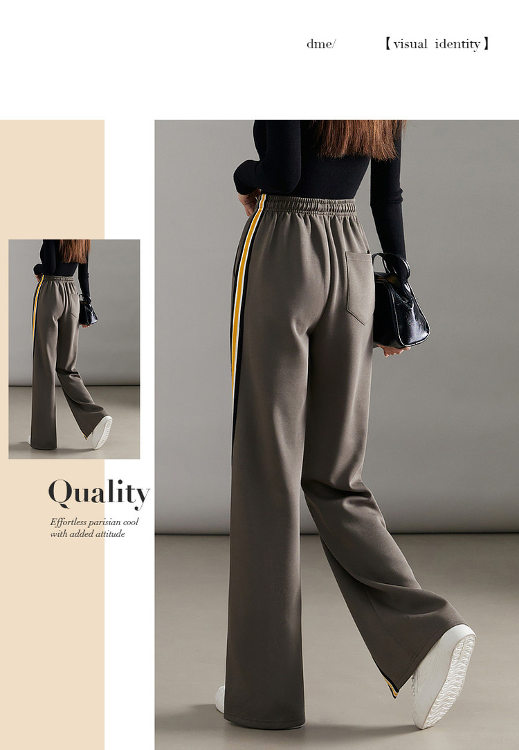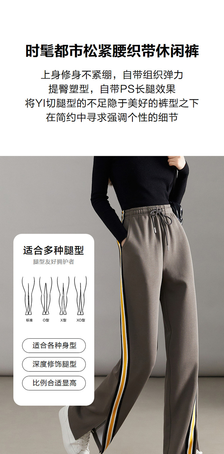 商品名称:【美拉德时髦都市】春秋直筒松紧腰女裤长裤开衩织带休闲裤子女 941697
