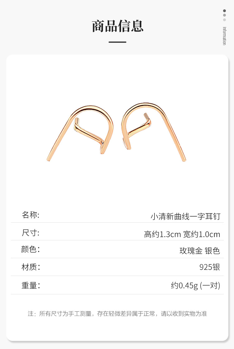 商品名称:【弯曲一字设计感】S925银简约线条耳环女 688129
