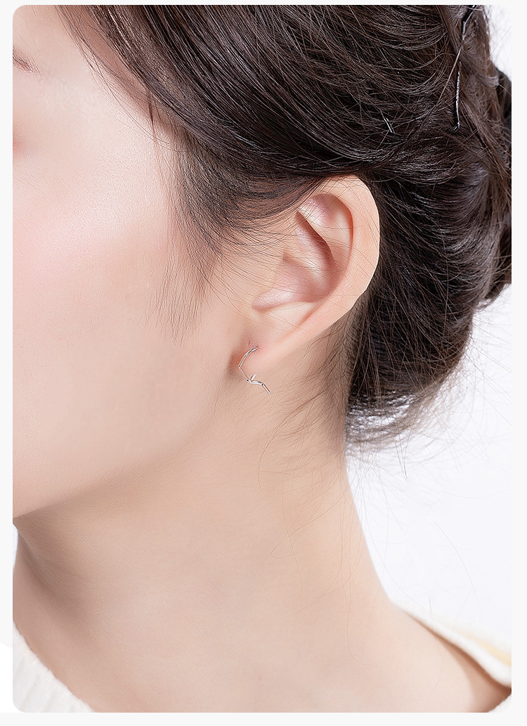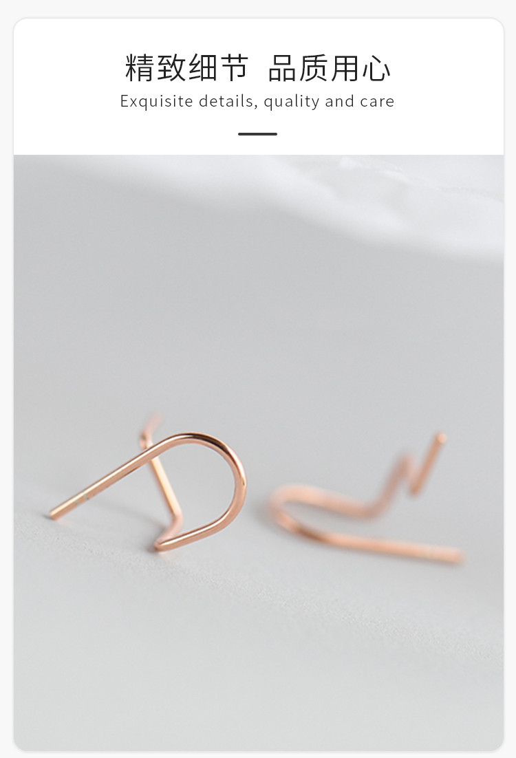 【弯曲一字设计感】S925银简约线条耳环女 688129