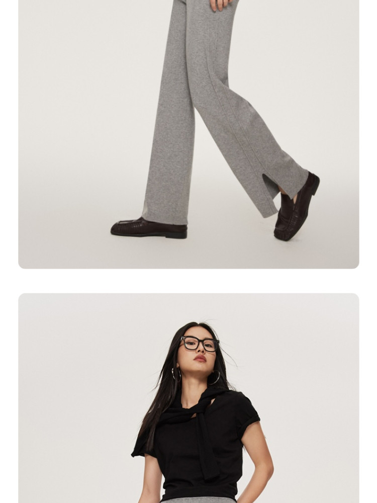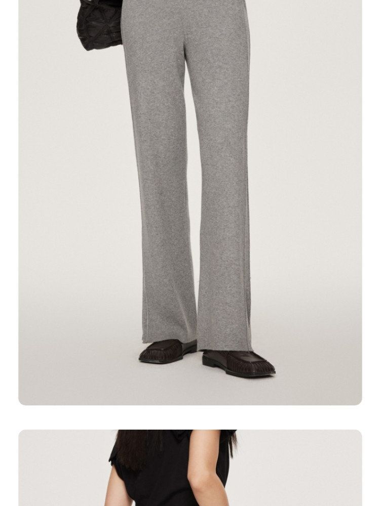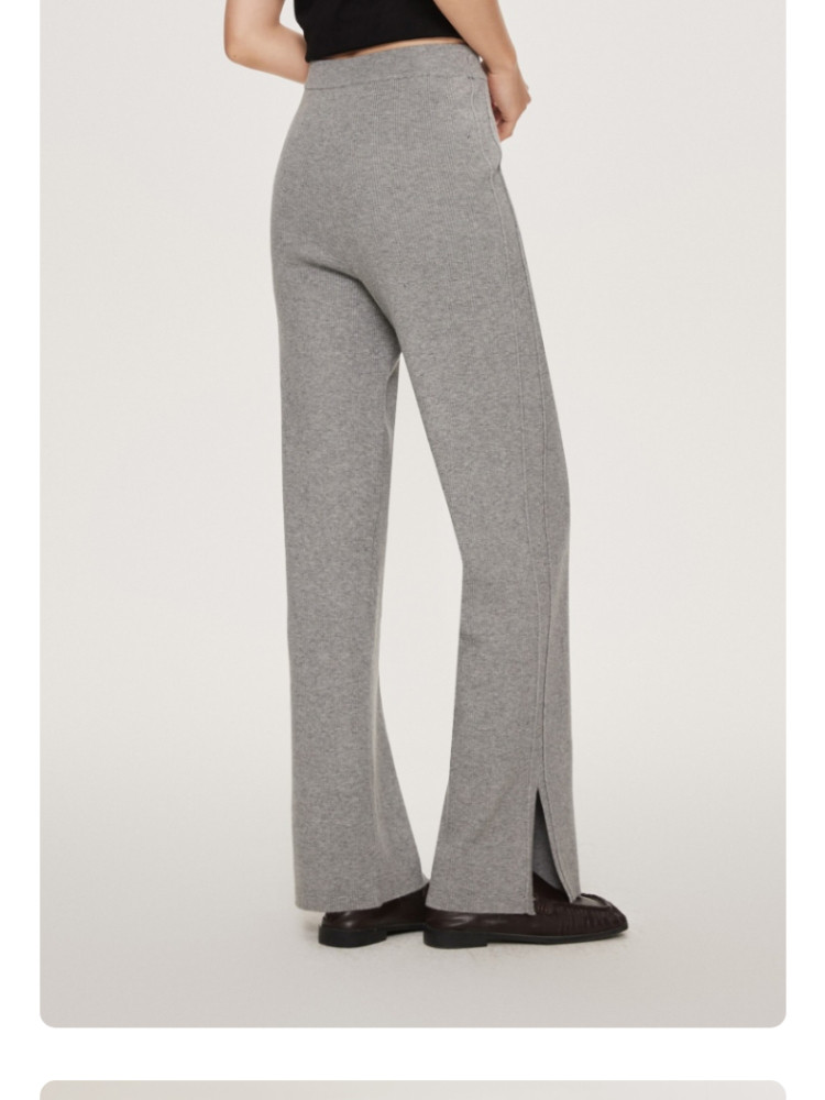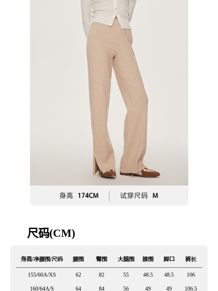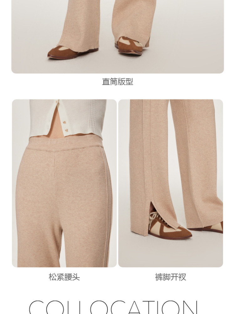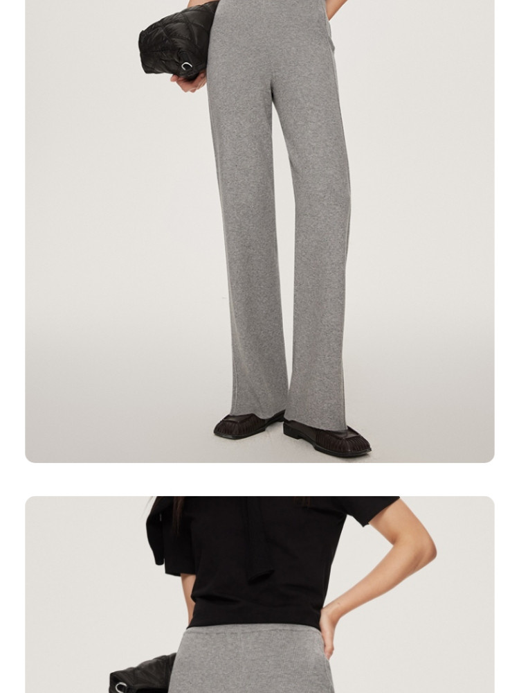 商品名称:休闲裤舒适松紧腰含羊毛针织高腰直筒长裤 865361