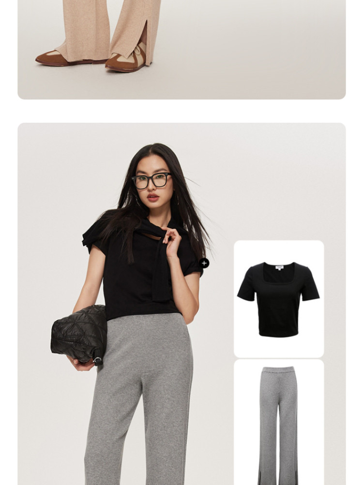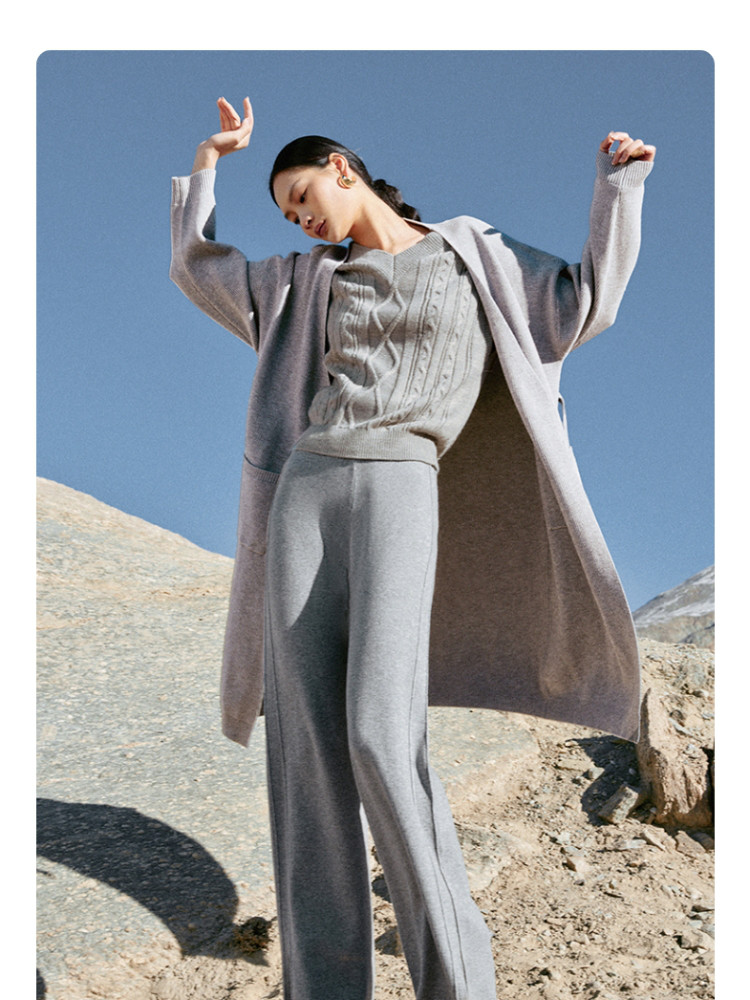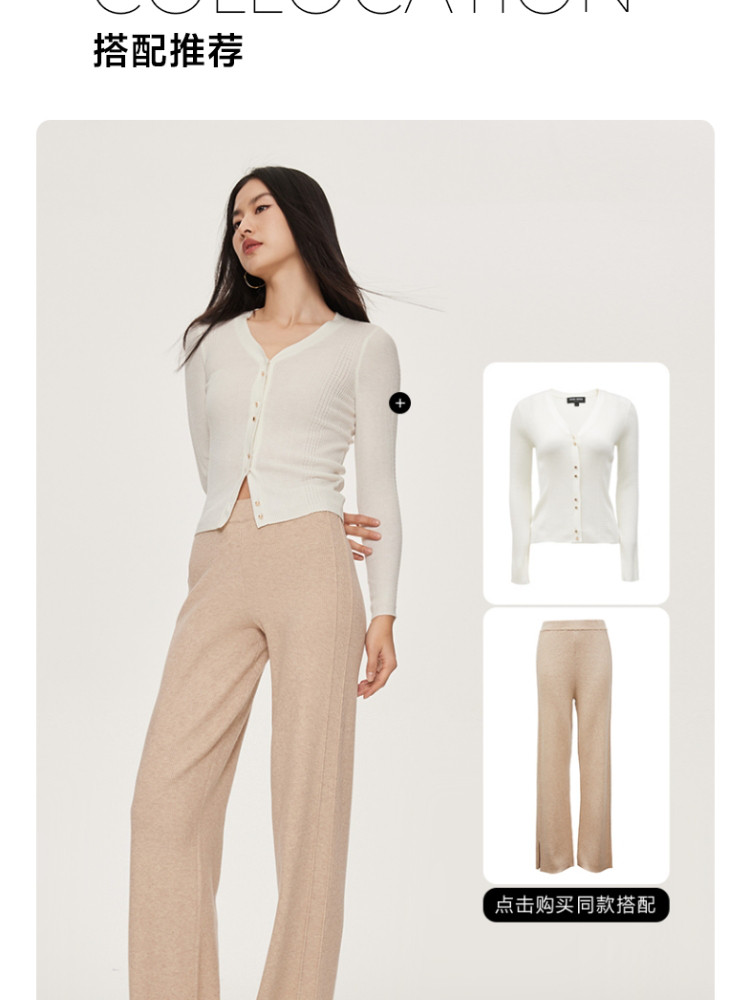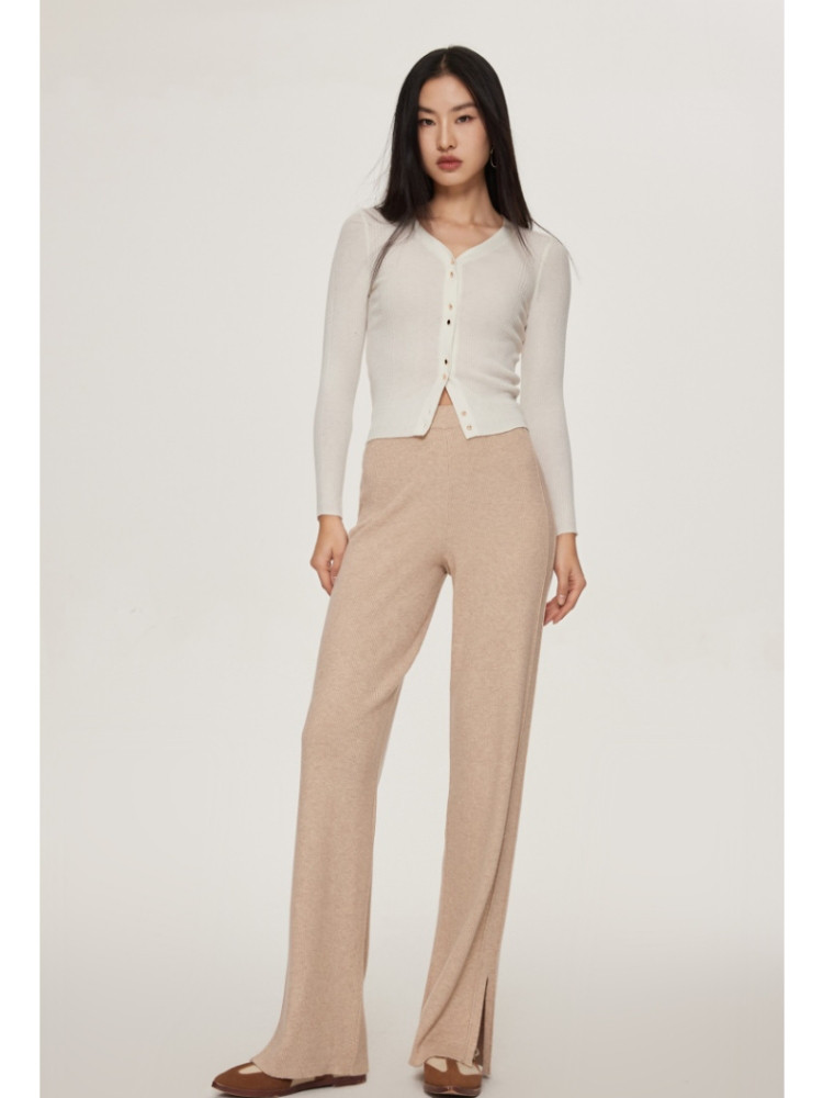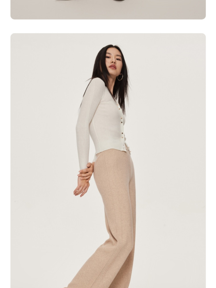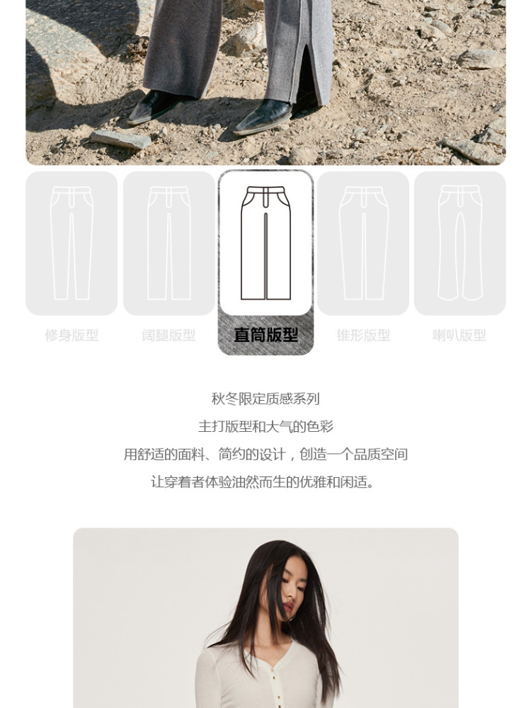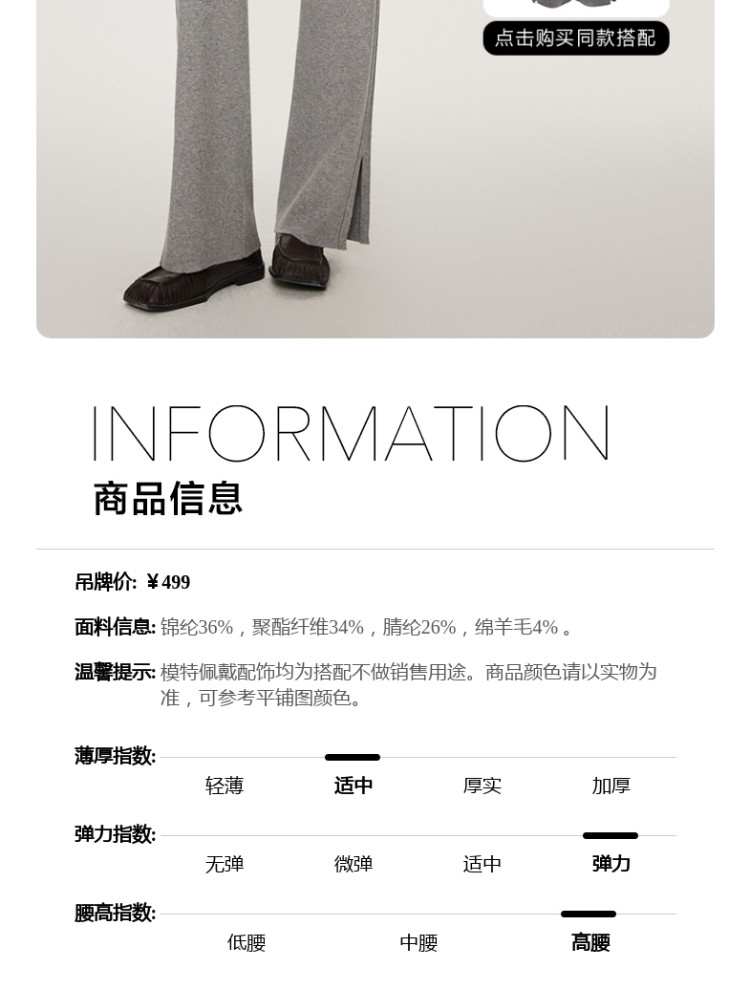 商品名称:休闲裤舒适松紧腰含羊毛针织高腰直筒长裤 865361
