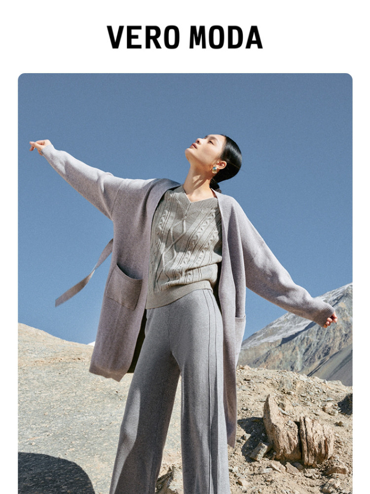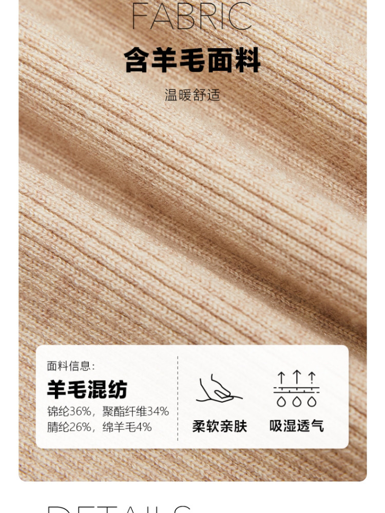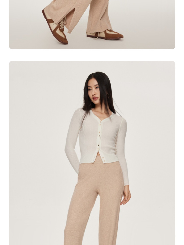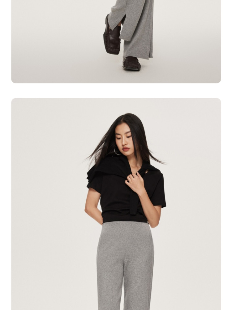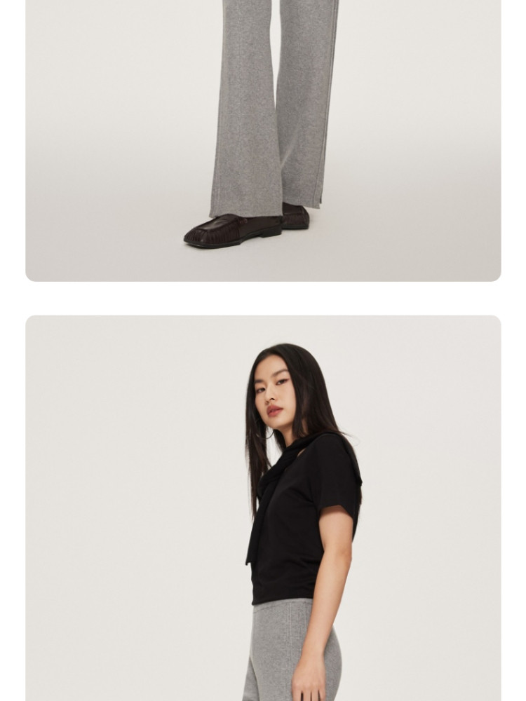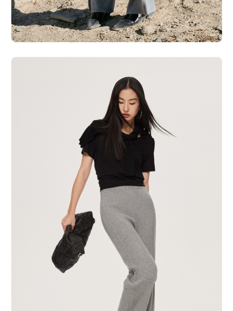 商品名称:休闲裤舒适松紧腰含羊毛针织高腰直筒长裤 865361