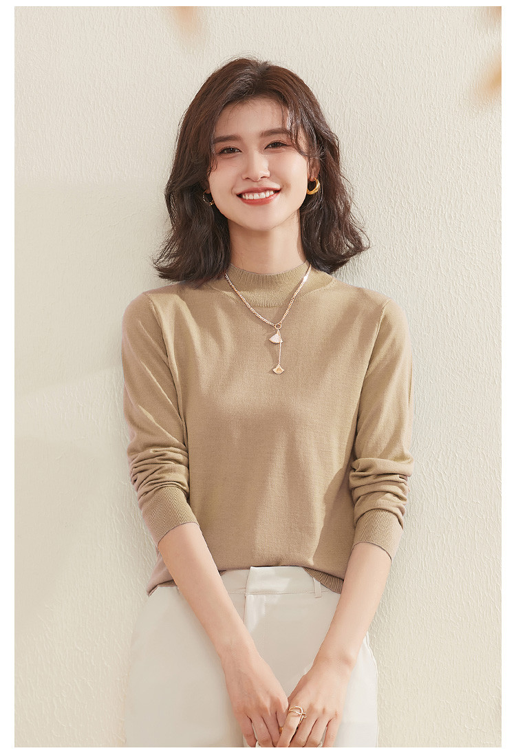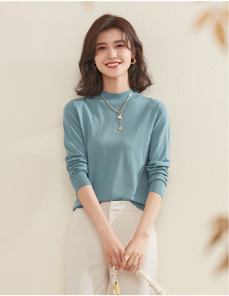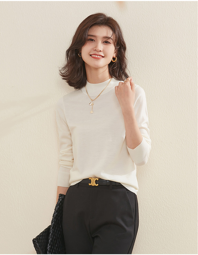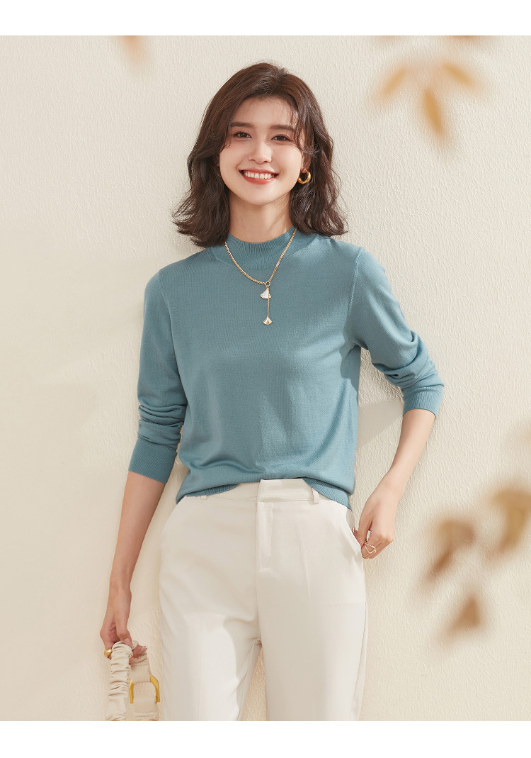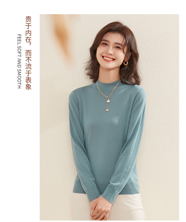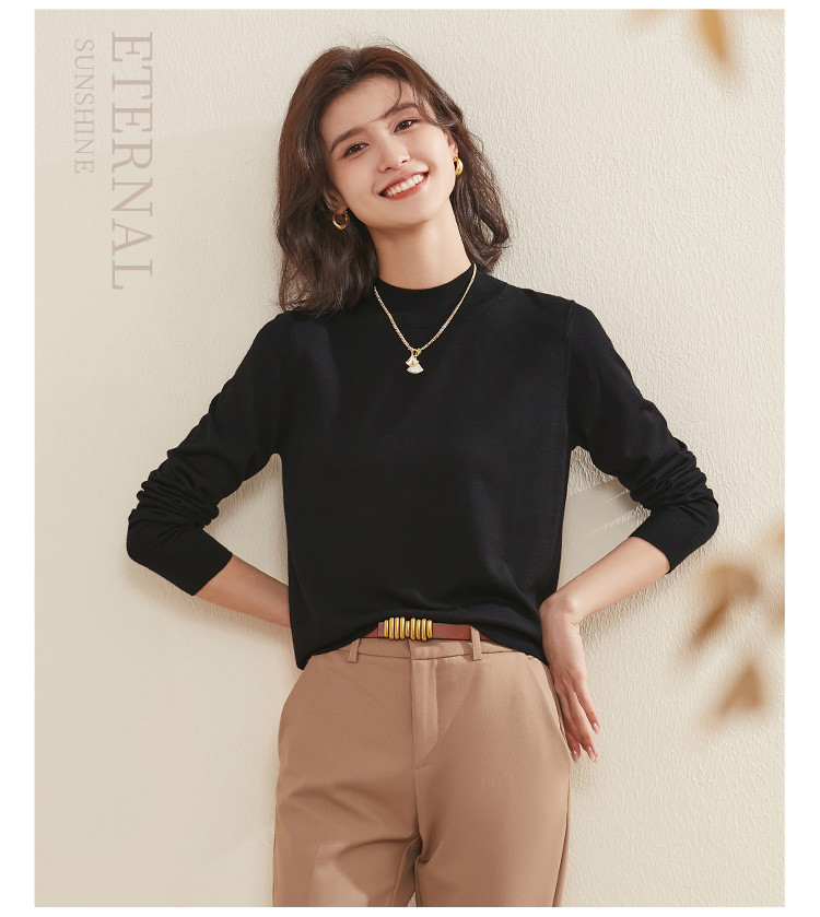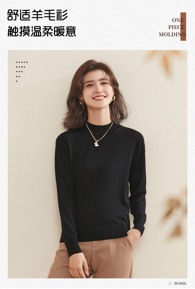 【100%绵羊毛】纯色基础百搭半高领羊毛衫舒适针织打底毛衣女 714015