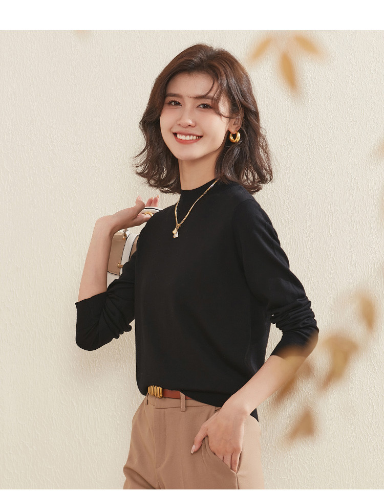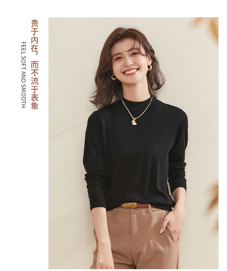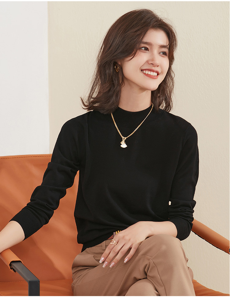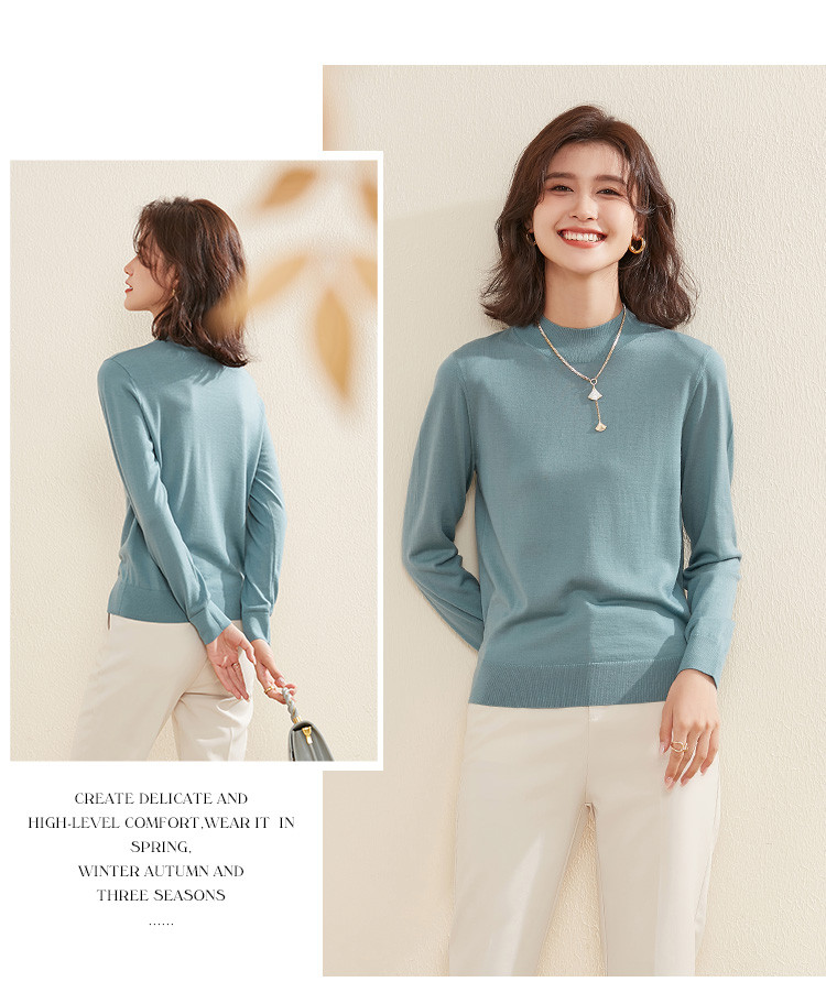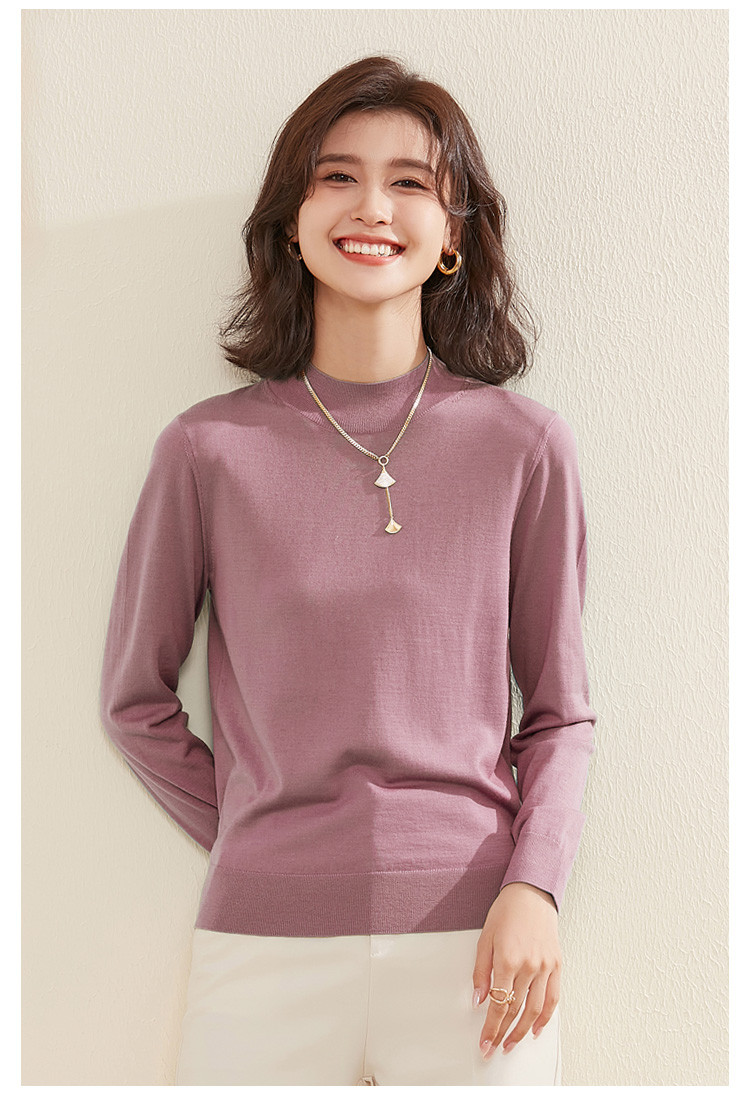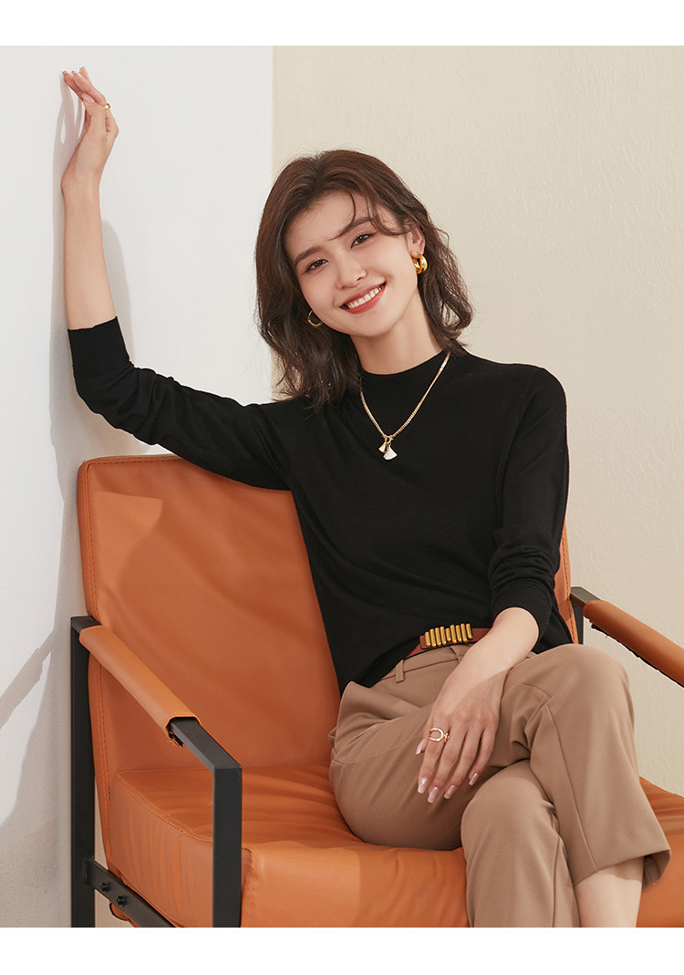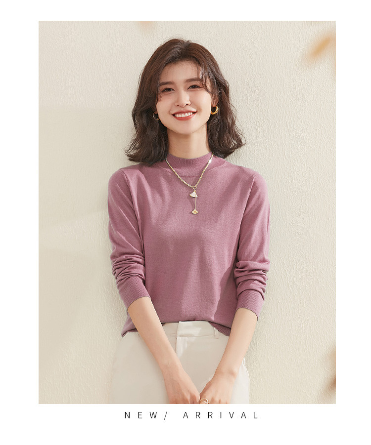 【100%绵羊毛】纯色基础百搭半高领羊毛衫舒适针织打底毛衣女 714015