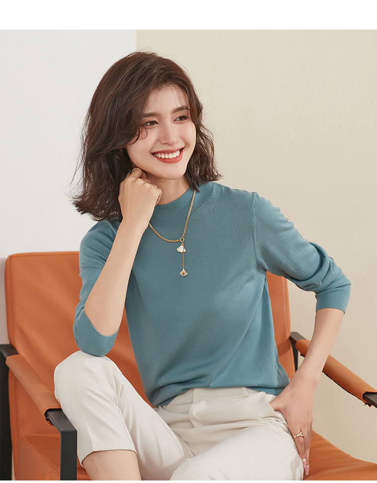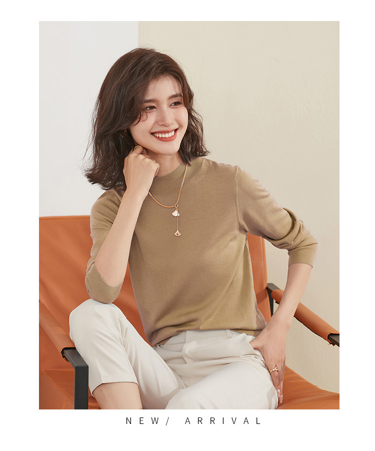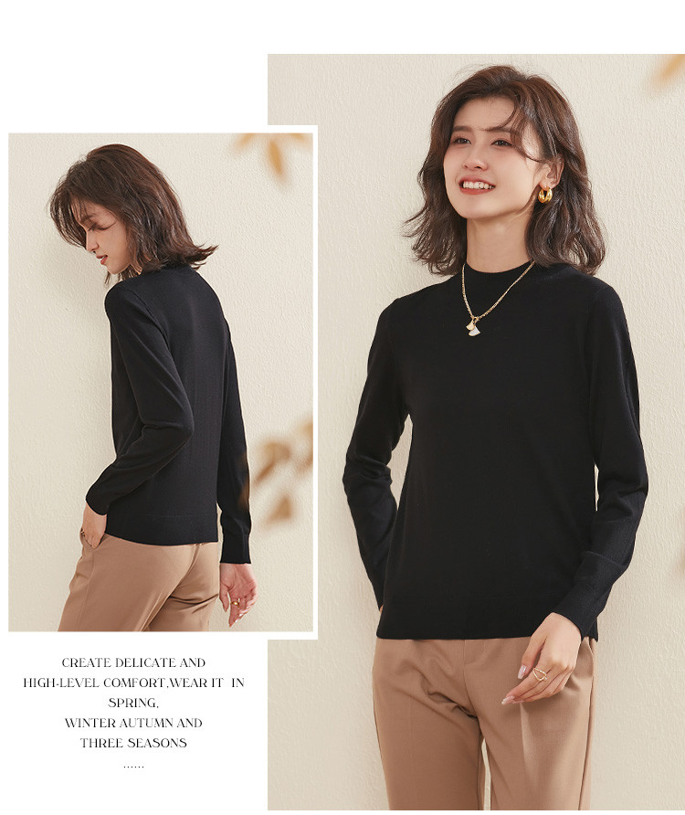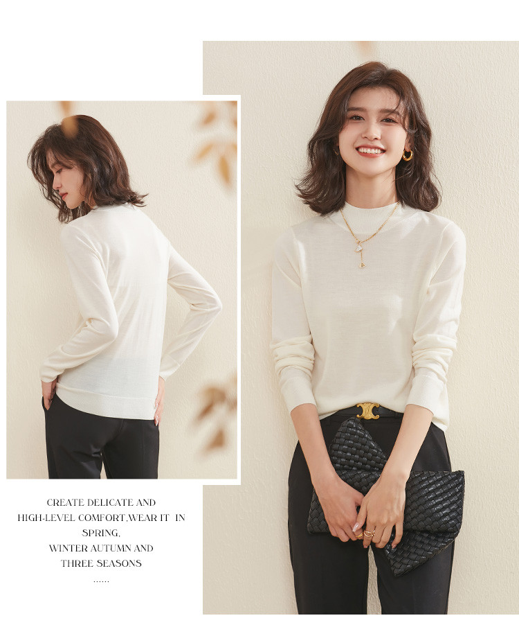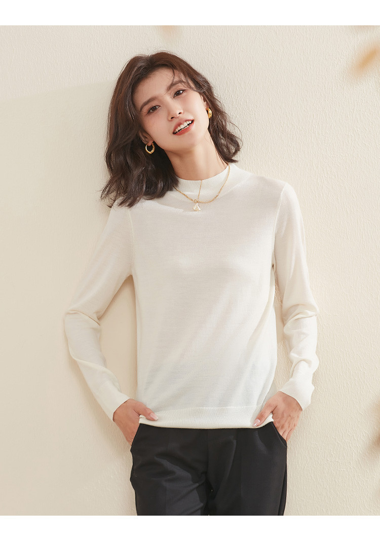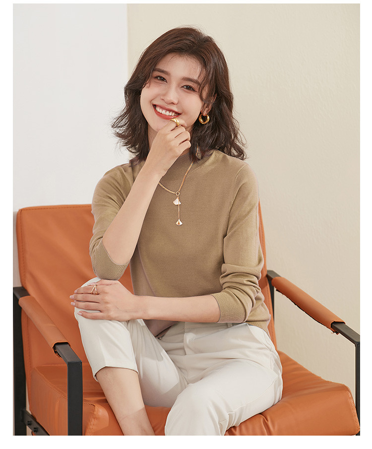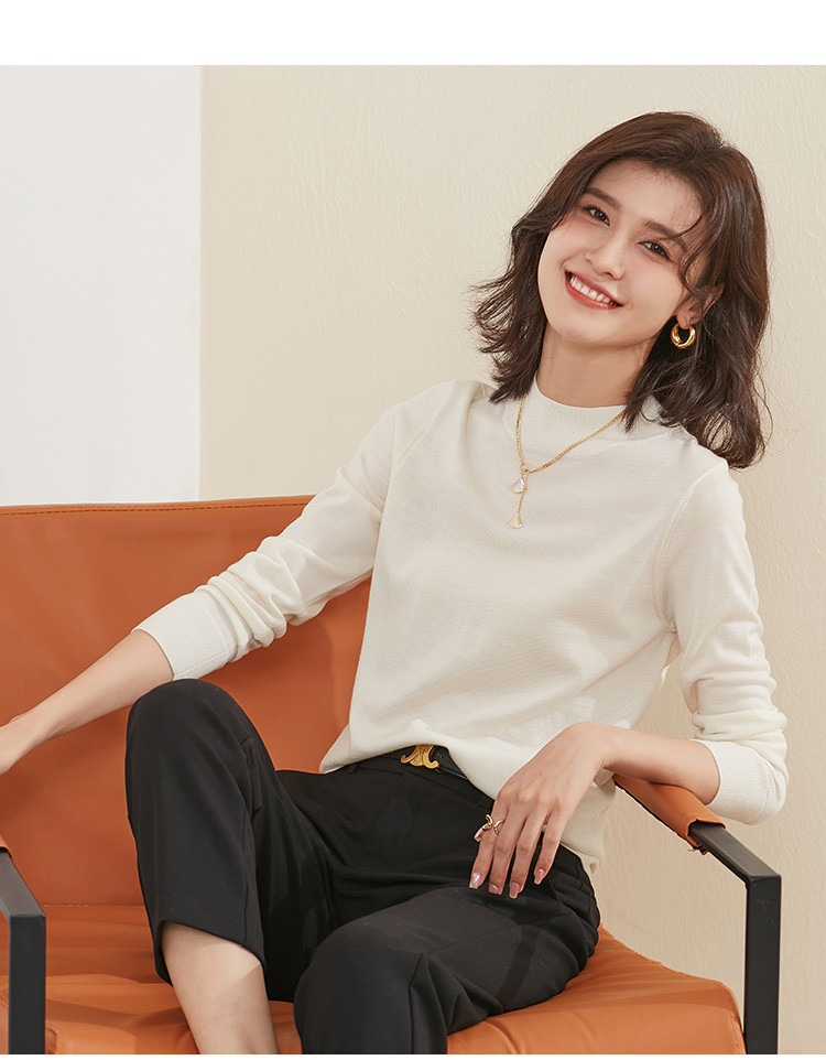 【100%绵羊毛】纯色基础百搭半高领羊毛衫舒适针织打底毛衣女 714015