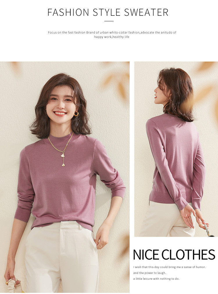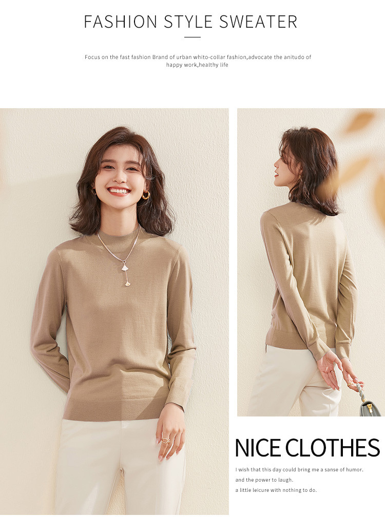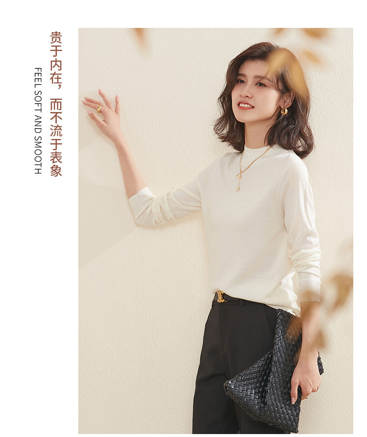 商品名称:【100%绵羊毛】纯色基础百搭半高领羊毛衫舒适针织打底毛衣女 714015