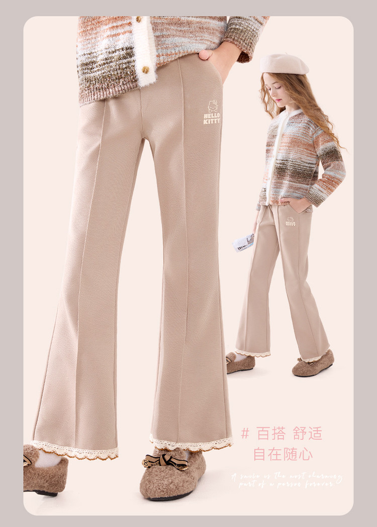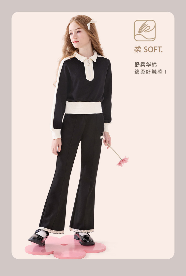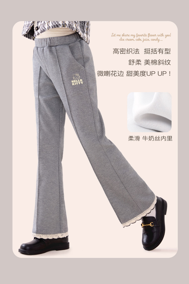 商品名称:【抗皱斜纹棉】女童喇叭裤春秋新款儿童裤子大童时尚修身微喇裤 696769