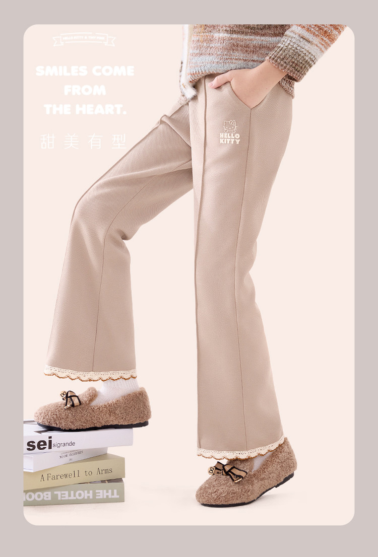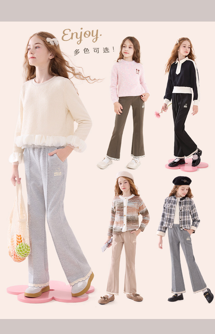 【抗皱斜纹棉】女童喇叭裤春秋新款儿童裤子大童时尚修身微喇裤 696769