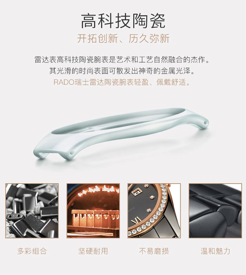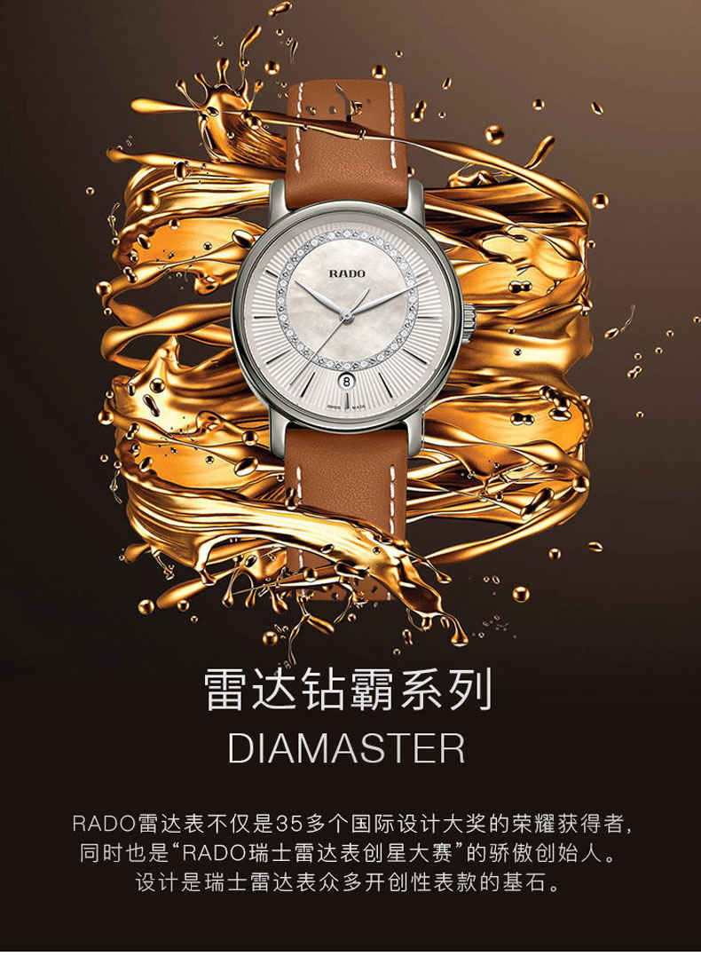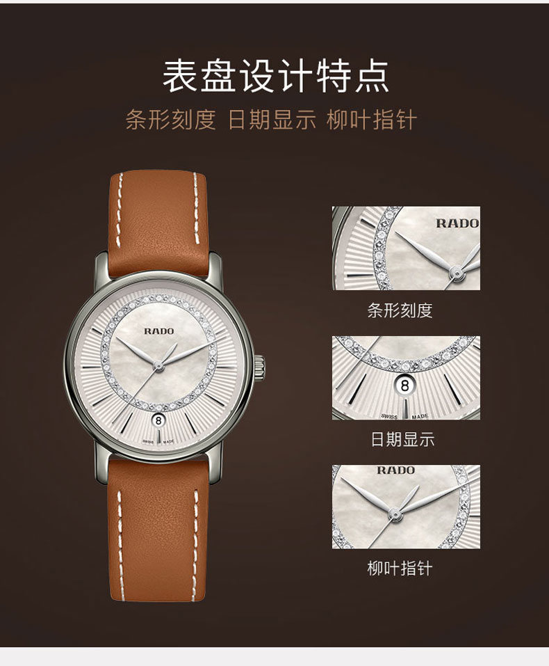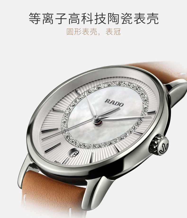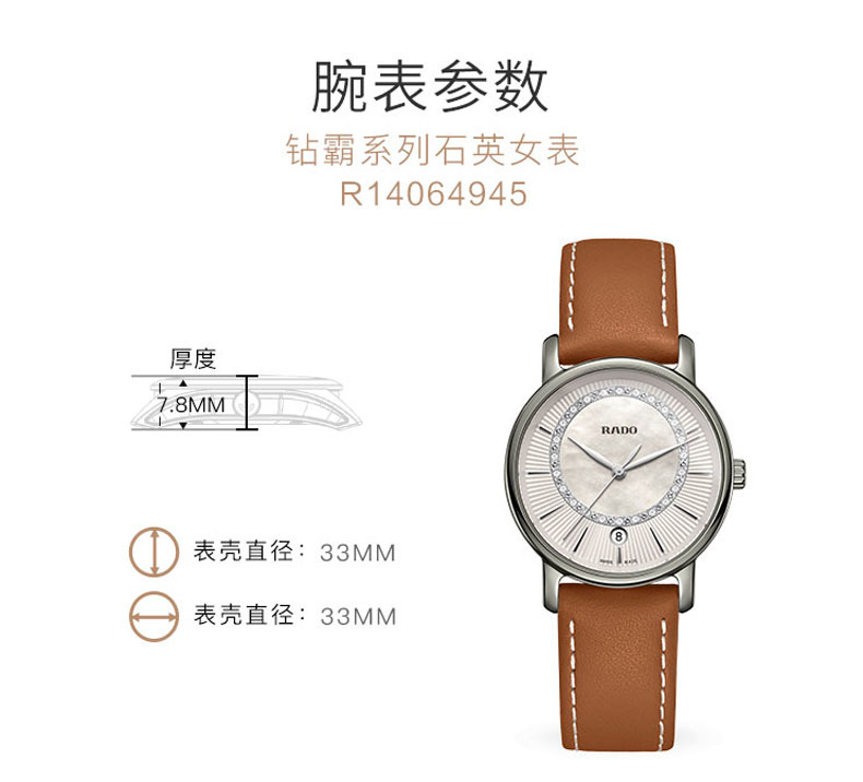 商品名称:RADO雷达 钻霸系列女士皮制表带石英钻表 R14064945