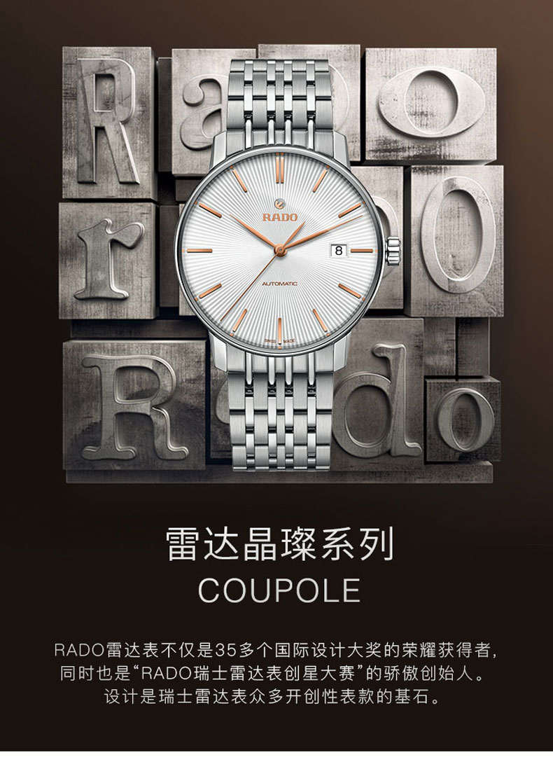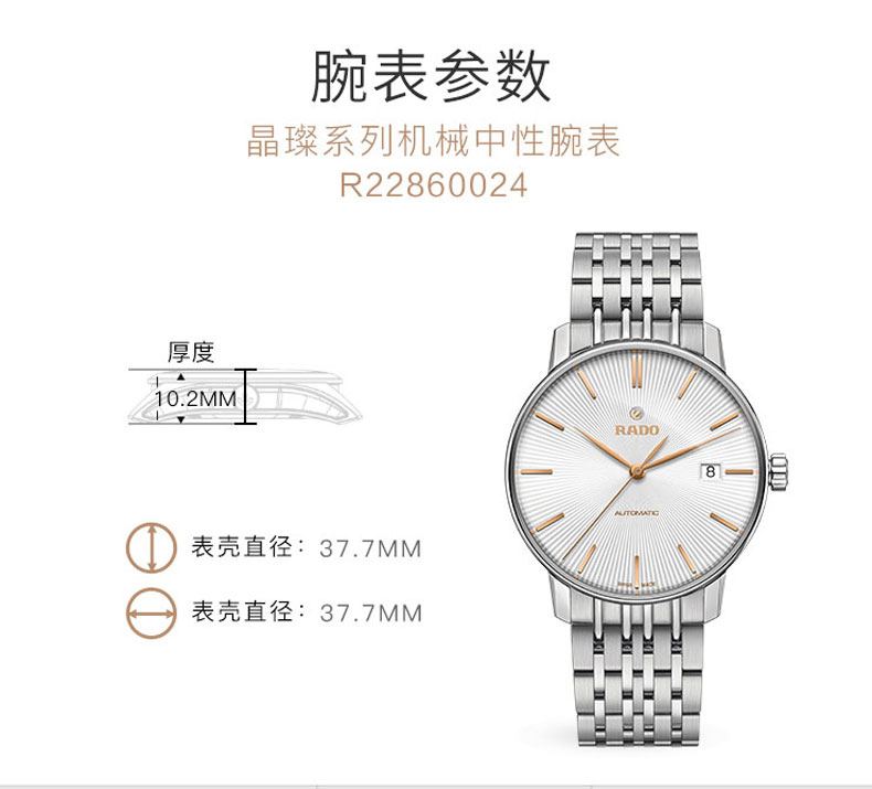 商品名称:RADO雷达 晶璨系列中性钢带机械手表 R22860024