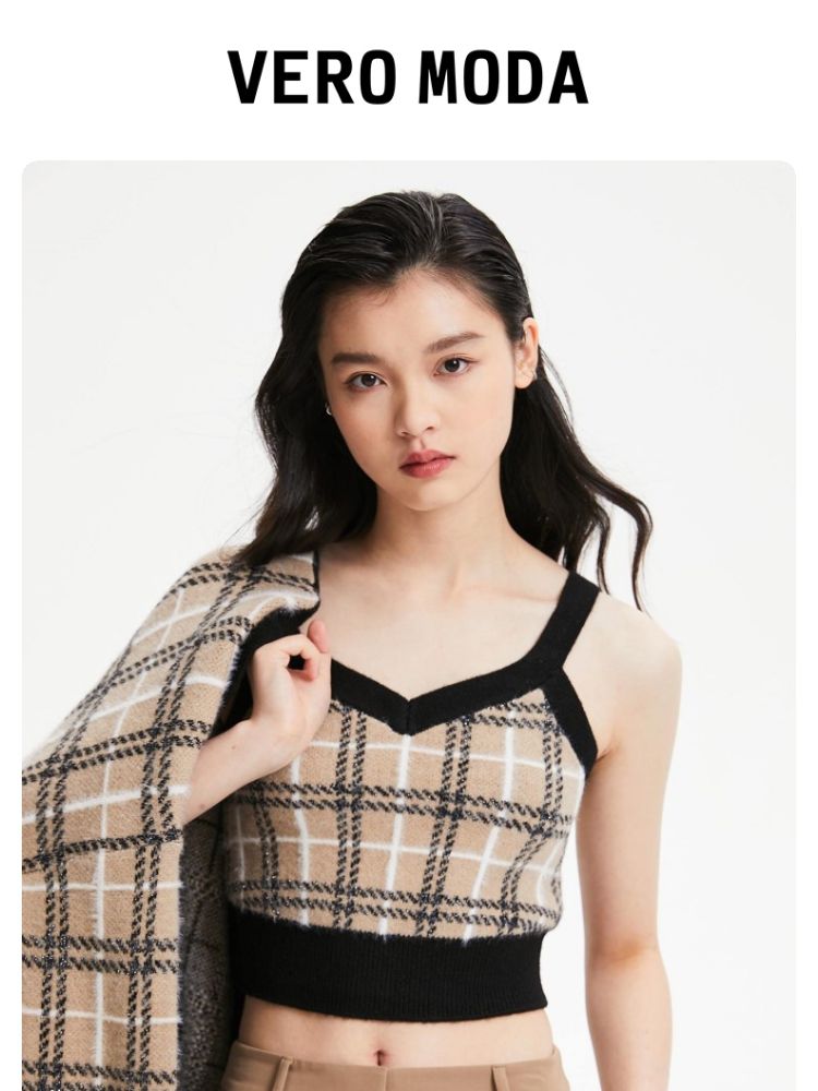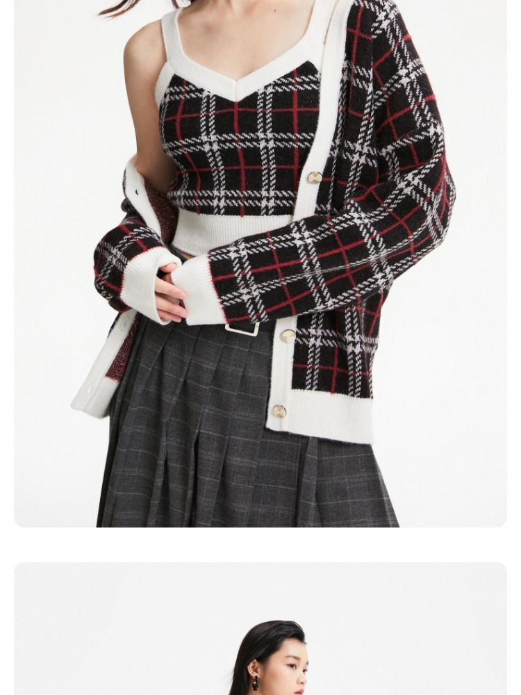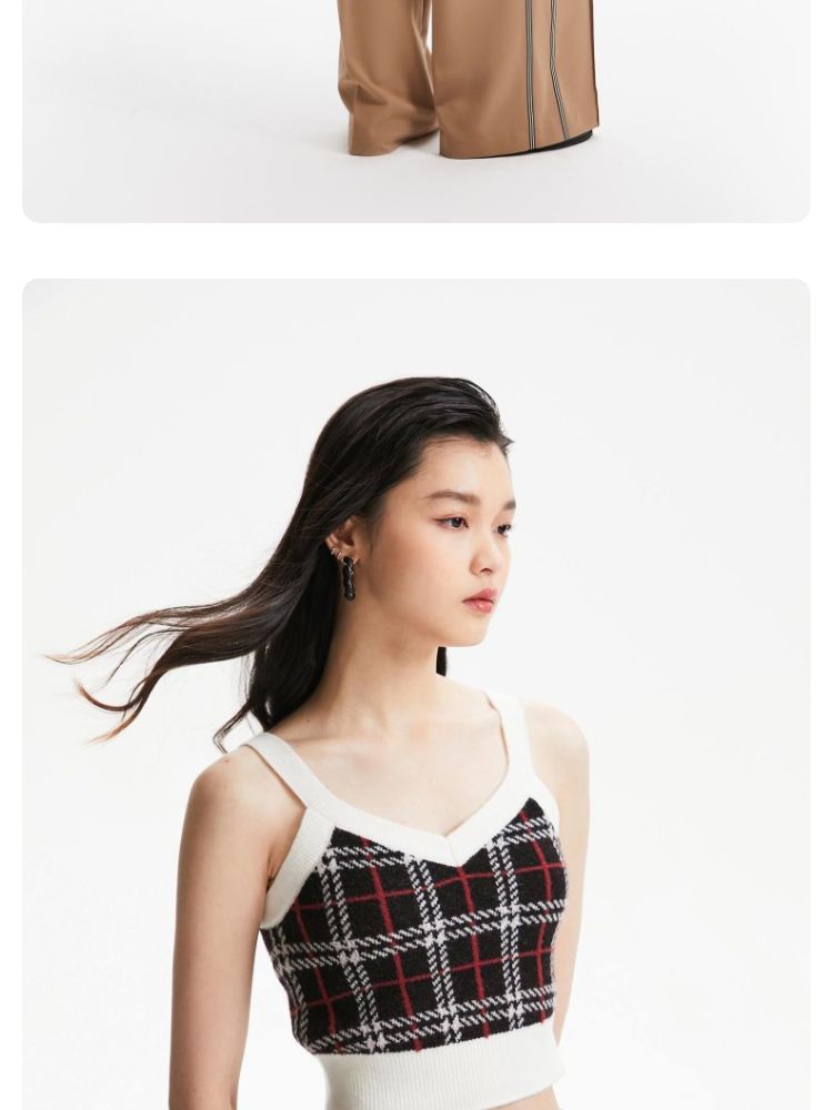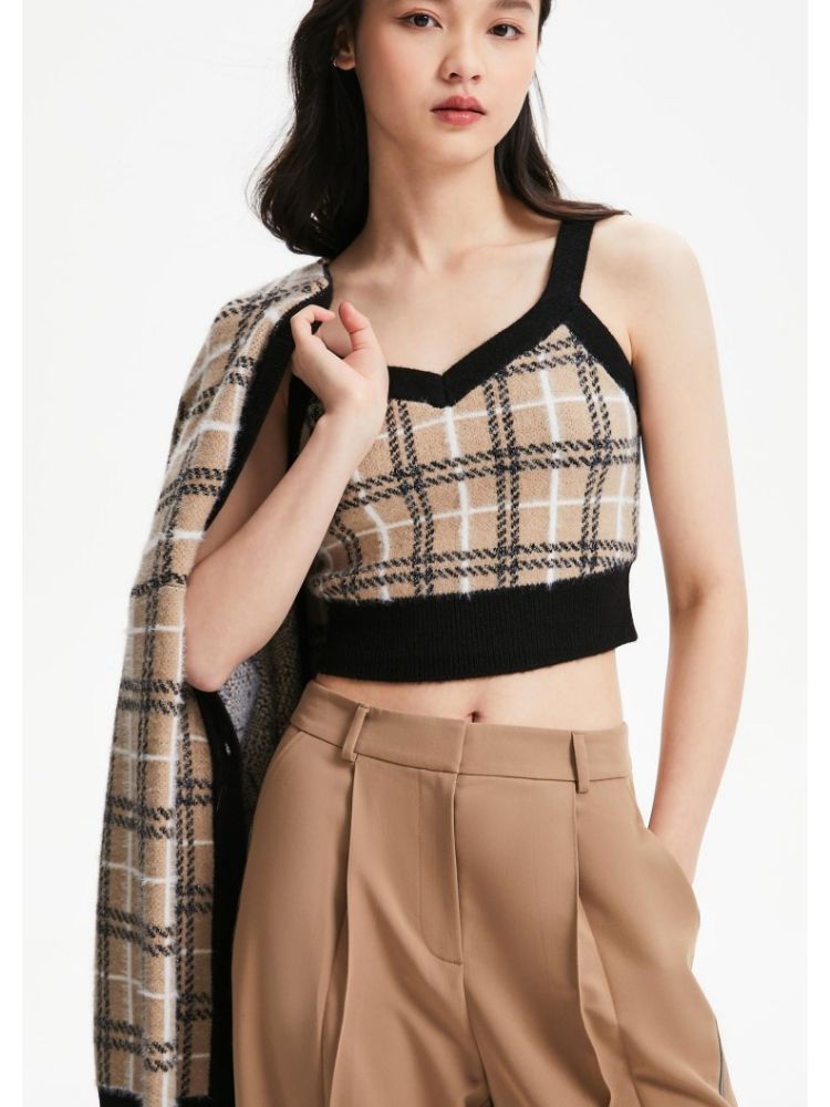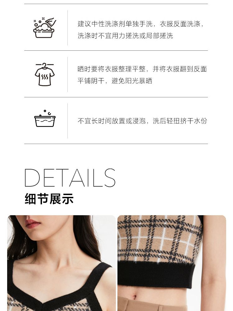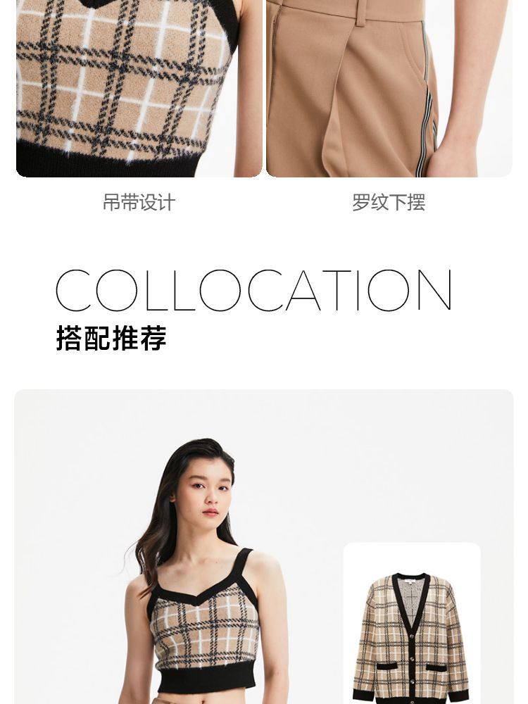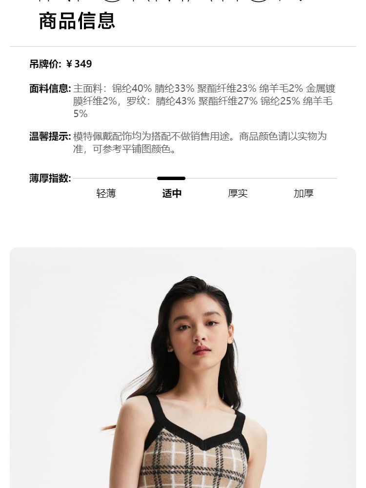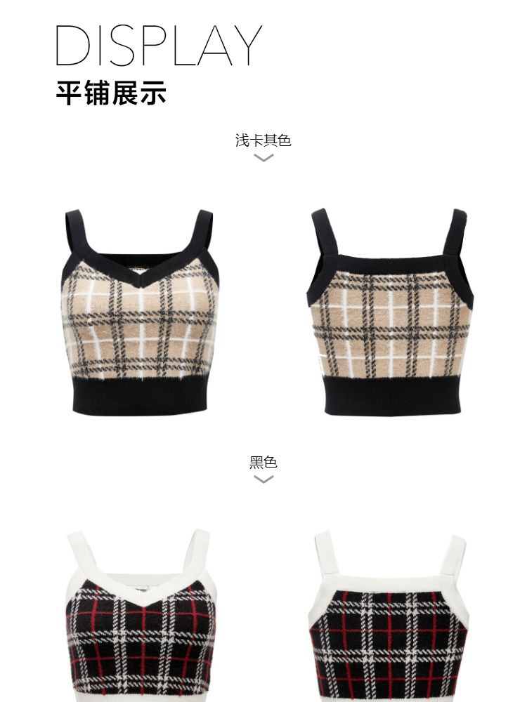 商品名称:【秋冬专柜款】英伦风V领内搭格纹韩系针织吊带背心女 114065