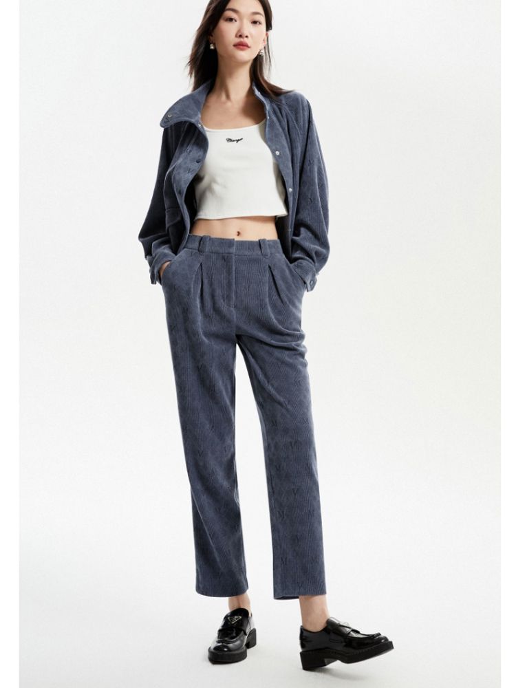 【春夏专柜款】九分高腰灯芯绒简约休闲裤女气质百搭时尚 739857