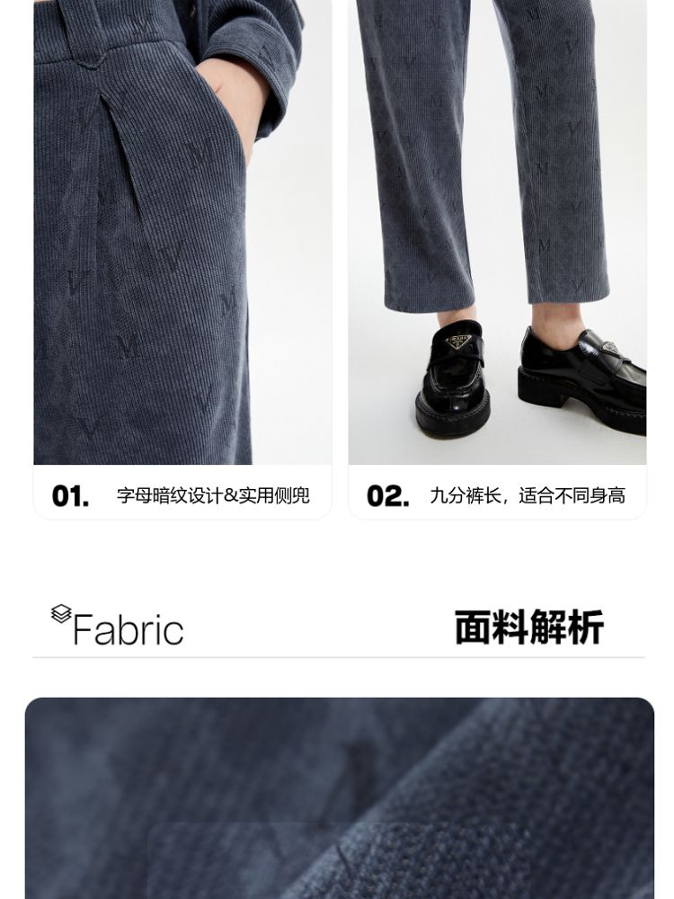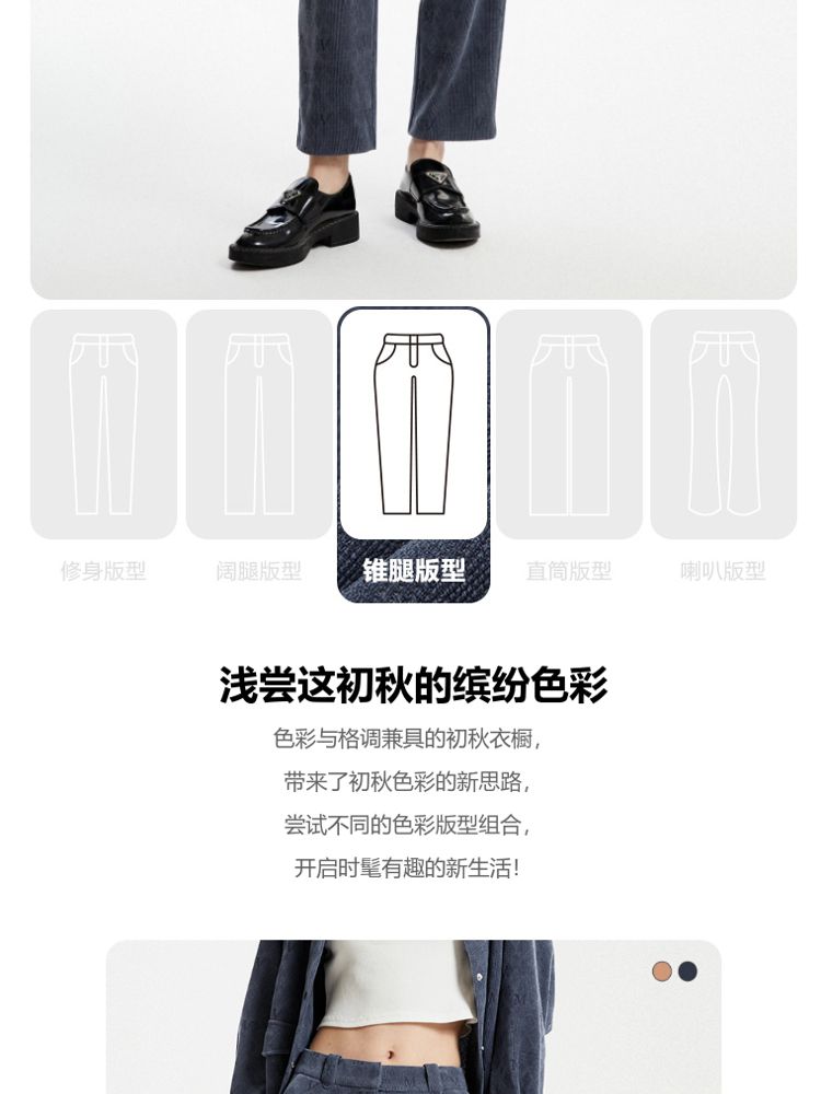商品名称:【春夏专柜款】九分高腰灯芯绒简约休闲裤女气质百搭时尚 739857