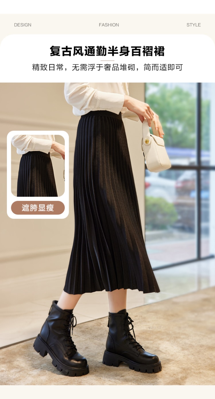 商品名称:【百褶半裙】秋装松紧腰百褶裙半身裙女 900866