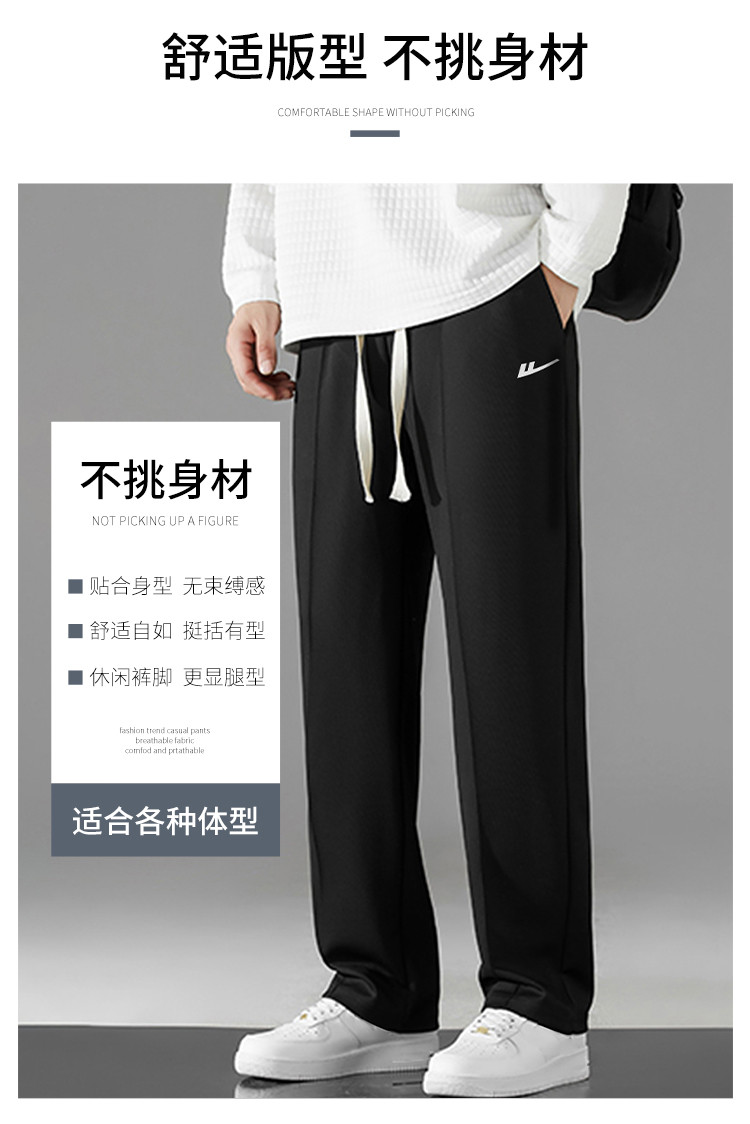 商品名称:运动裤春秋季青少年男款潮流宽松百搭直筒裤青少年时尚抽绳休闲裤 410899