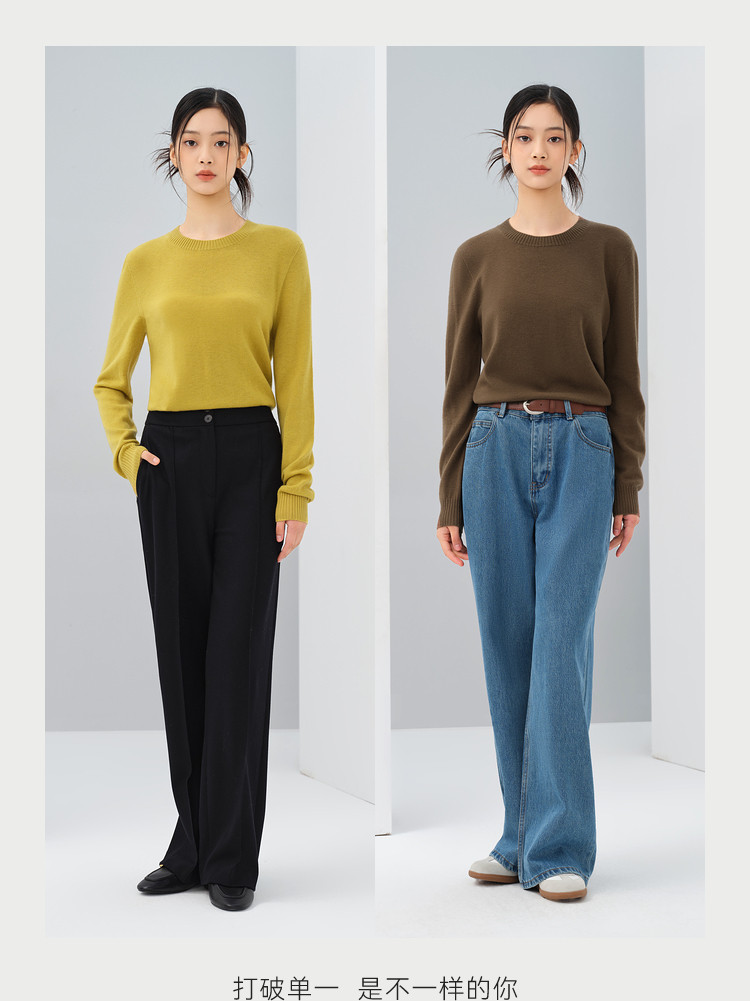 【女款100%绵羊毛】春秋热销修身时尚都市显瘦女士长袖针织衫 725256