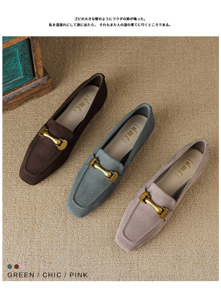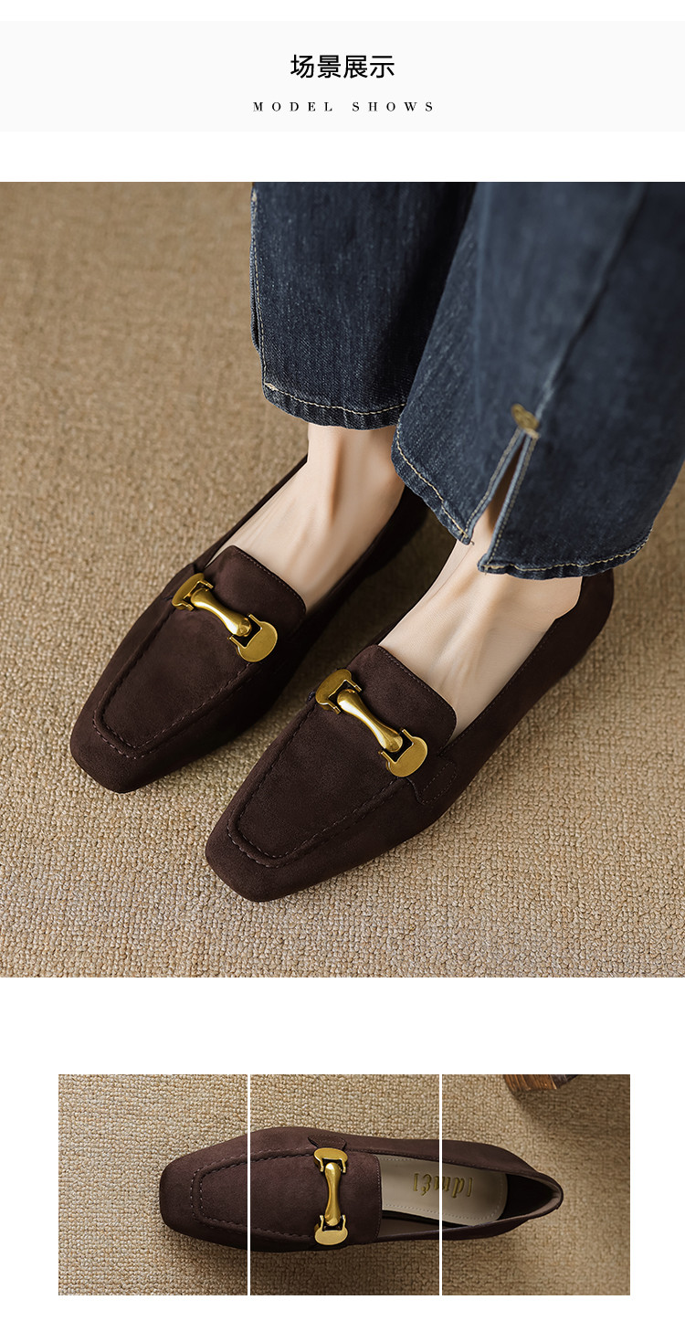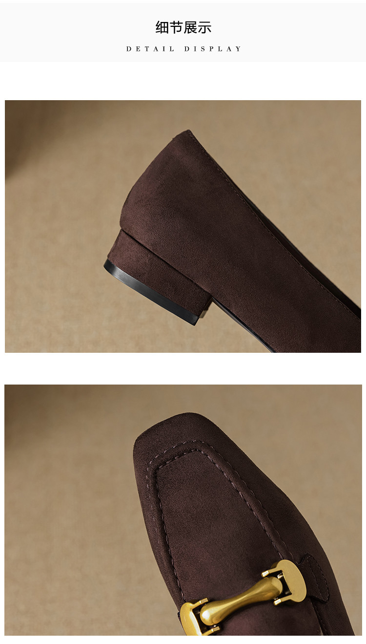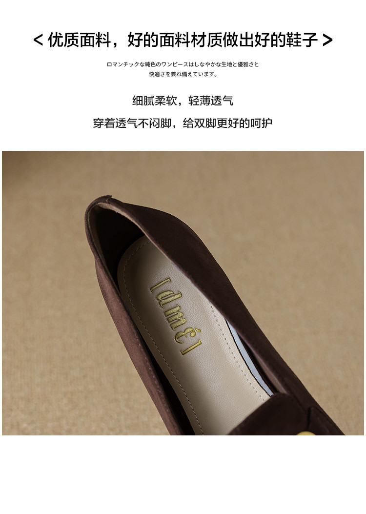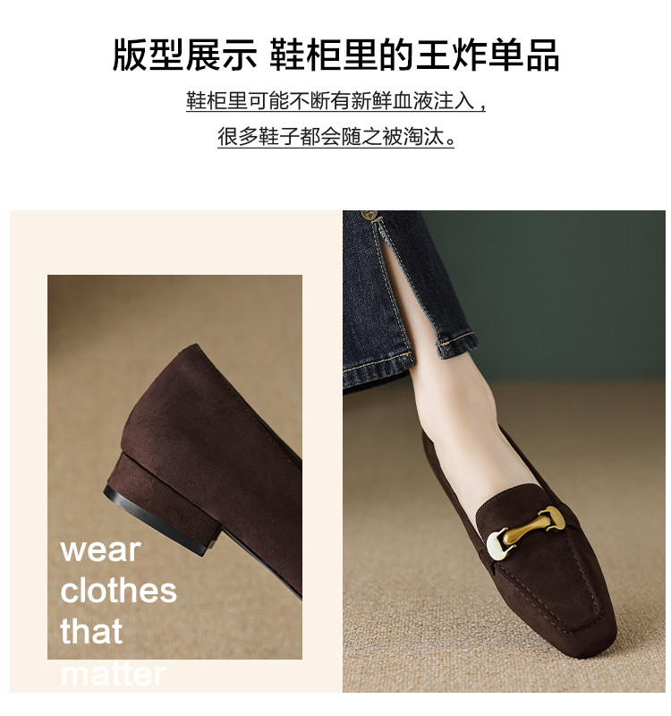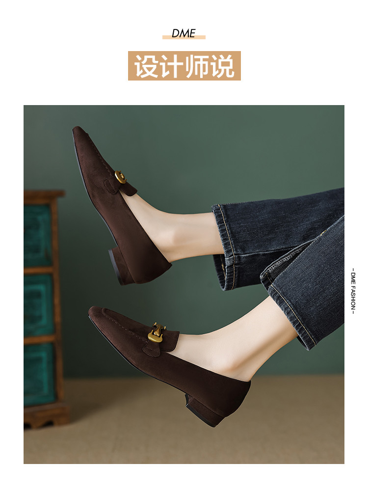 商品名称:春复古百搭美拉德色纯色深口金属饰扣乐福鞋女单鞋 846465