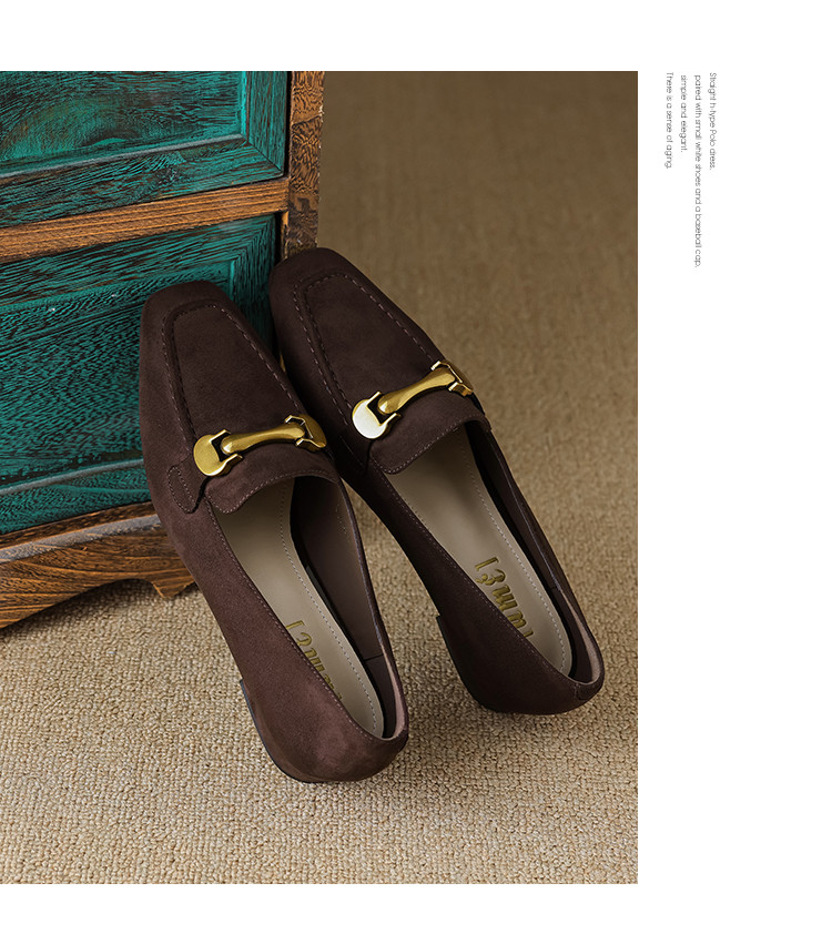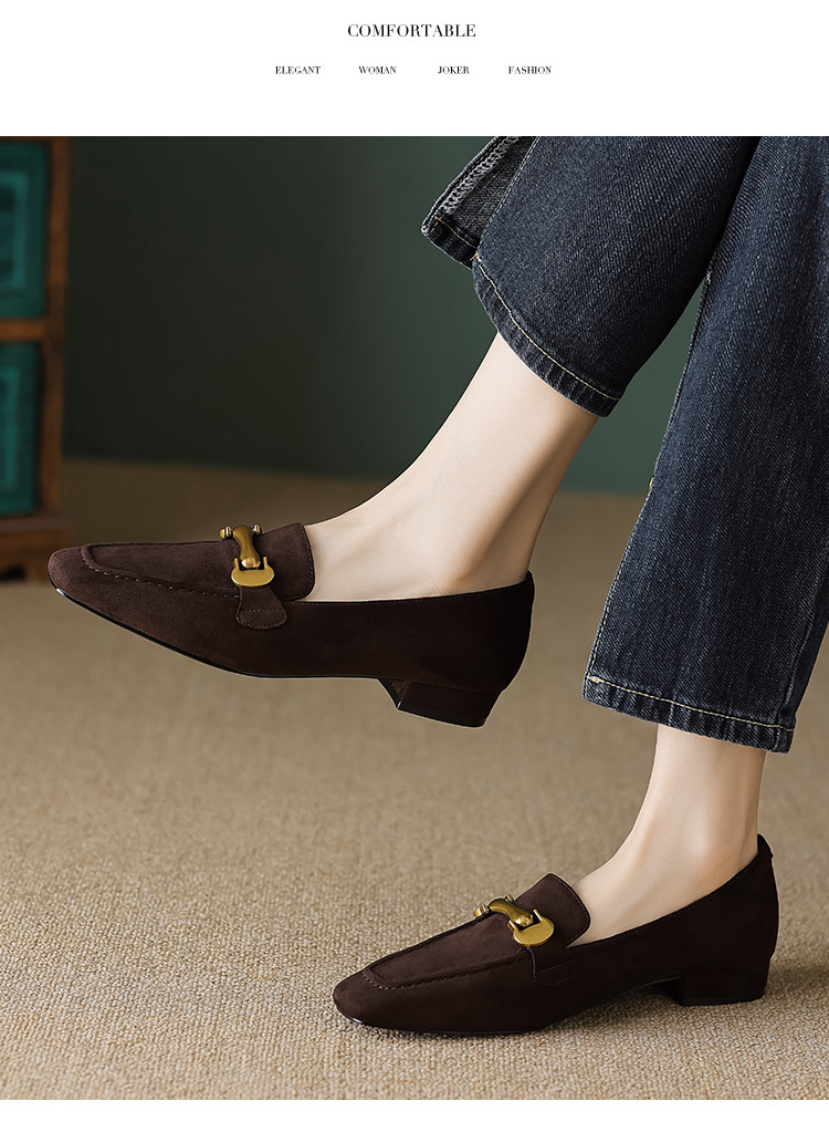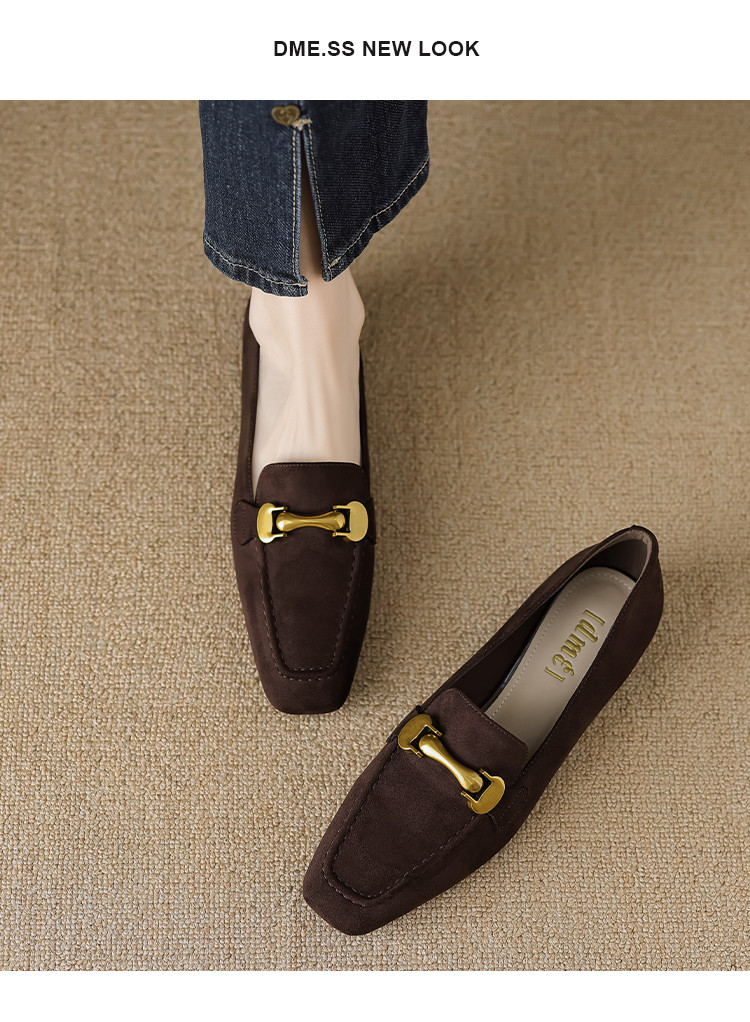 春复古百搭美拉德色纯色深口金属饰扣乐福鞋女单鞋 846465
