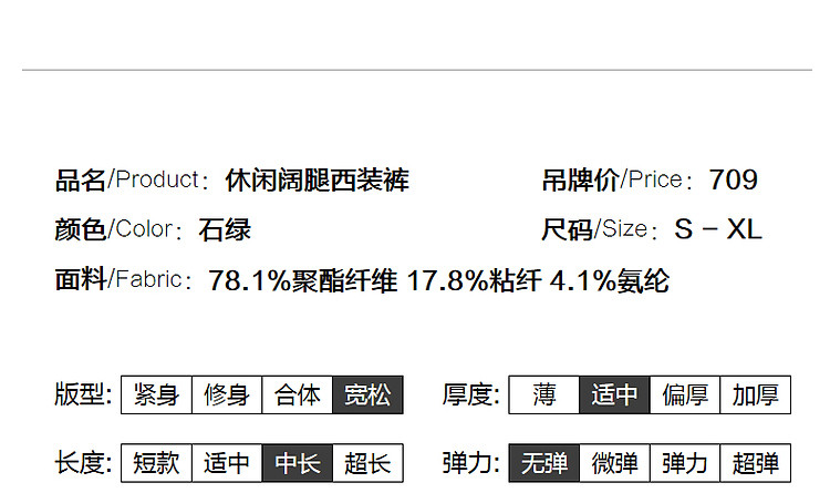 商品名称:【休闲阔腿西装裤】秋中腰宽松长裤休闲裤子女裤 879361