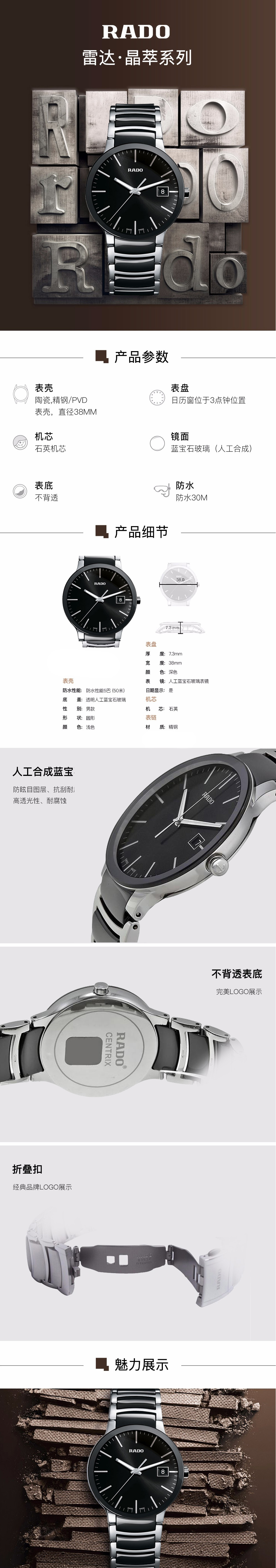 商品名称:RADO雷达 晶萃系列陶瓷石英手表男腕表 R30934162